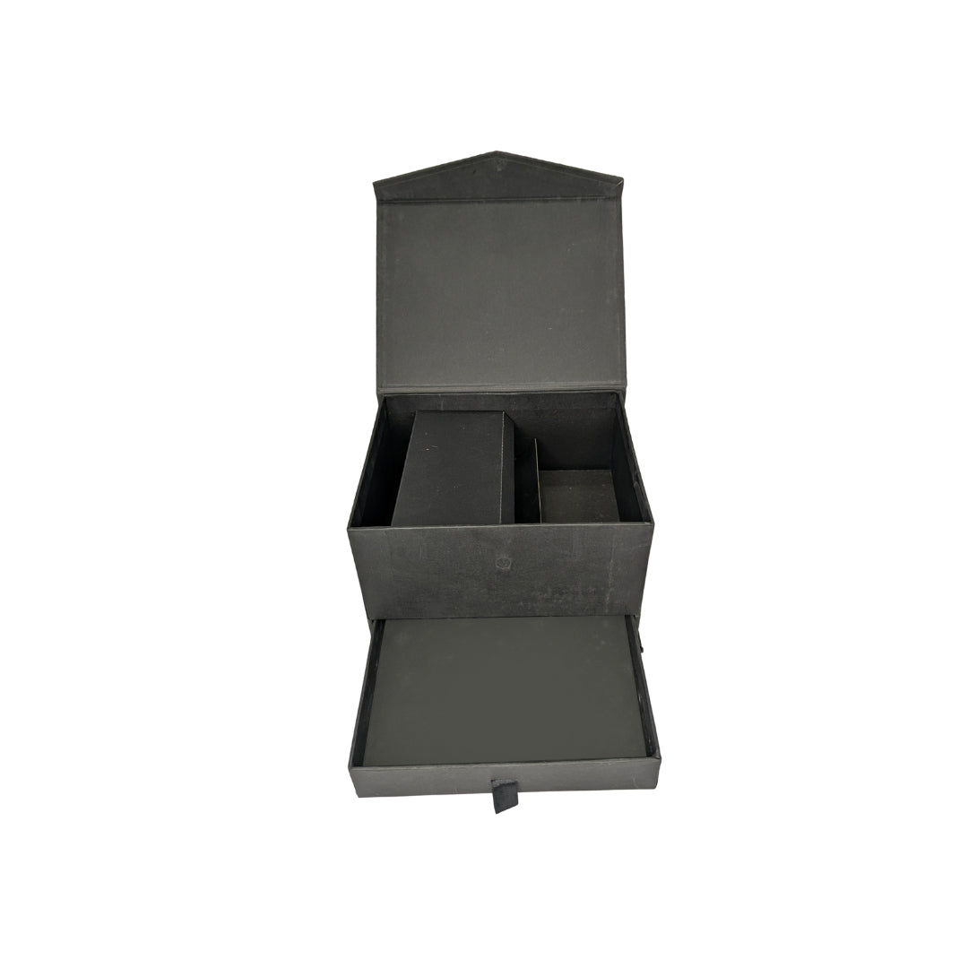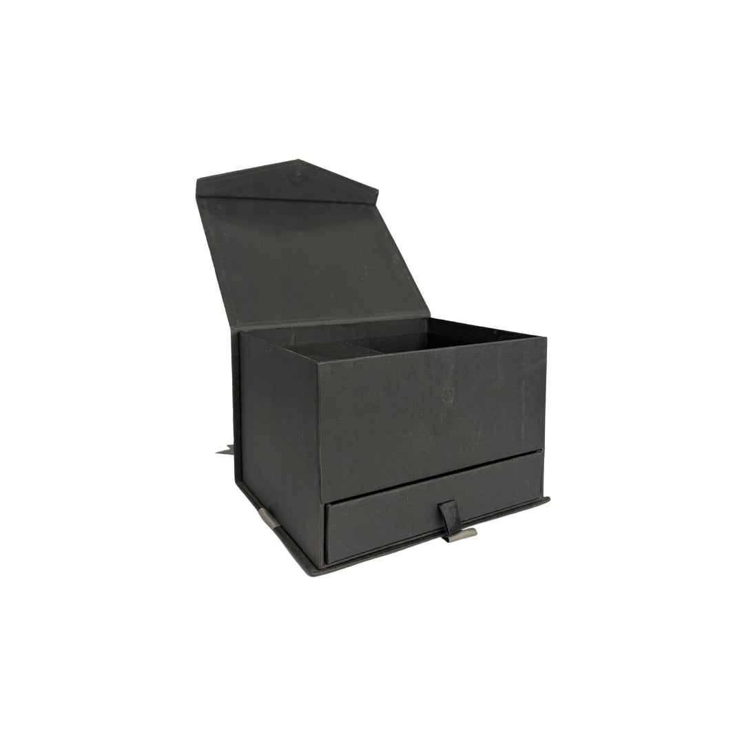 Elevate your gifting experience with this Premium Black Multi-Compartment Gift Box, designed for those who appreciate refined presentation and practical organization. Wrapped in a sleek matte-black finish and adorned with an elegant ribbon-tie closure, this box combines luxury with utility.