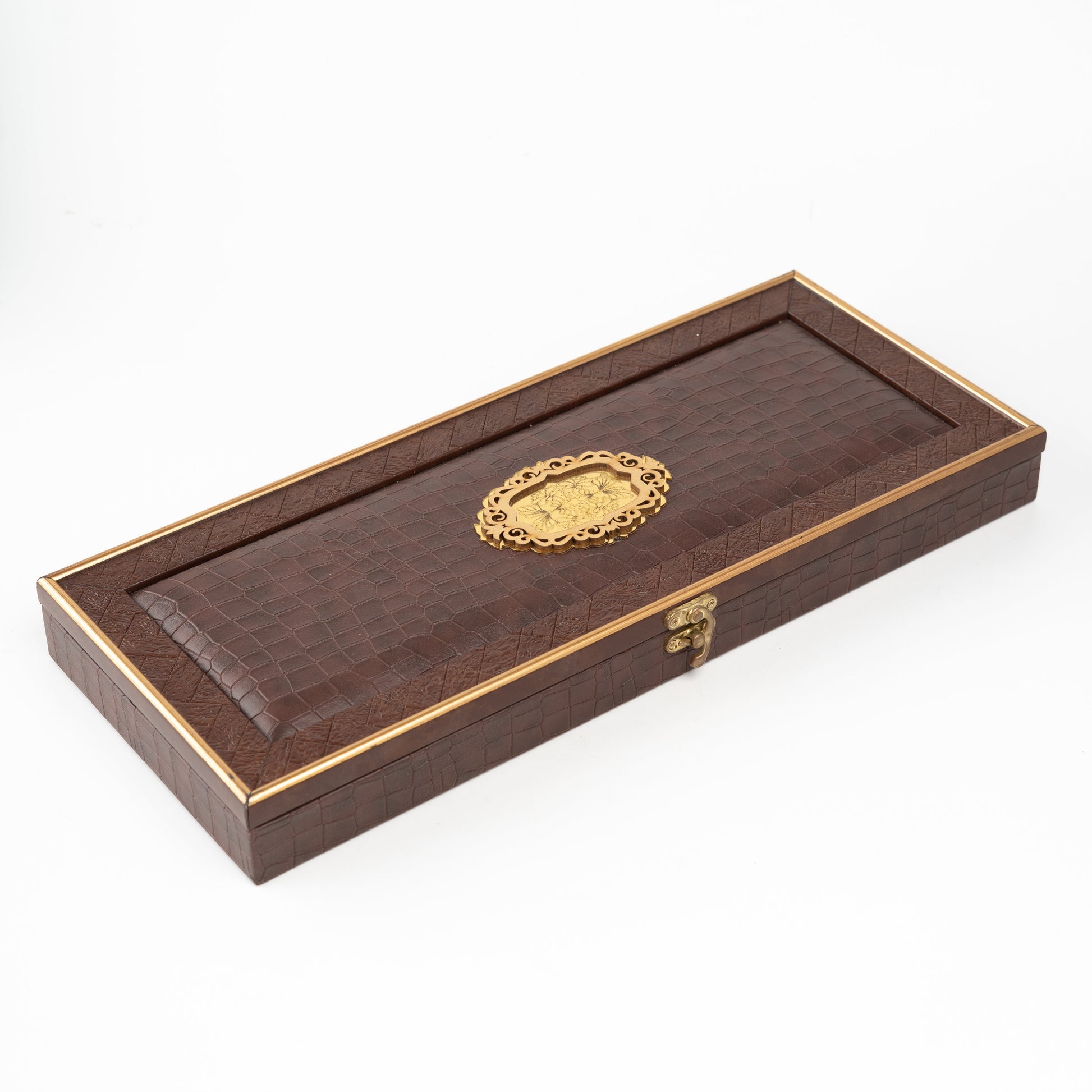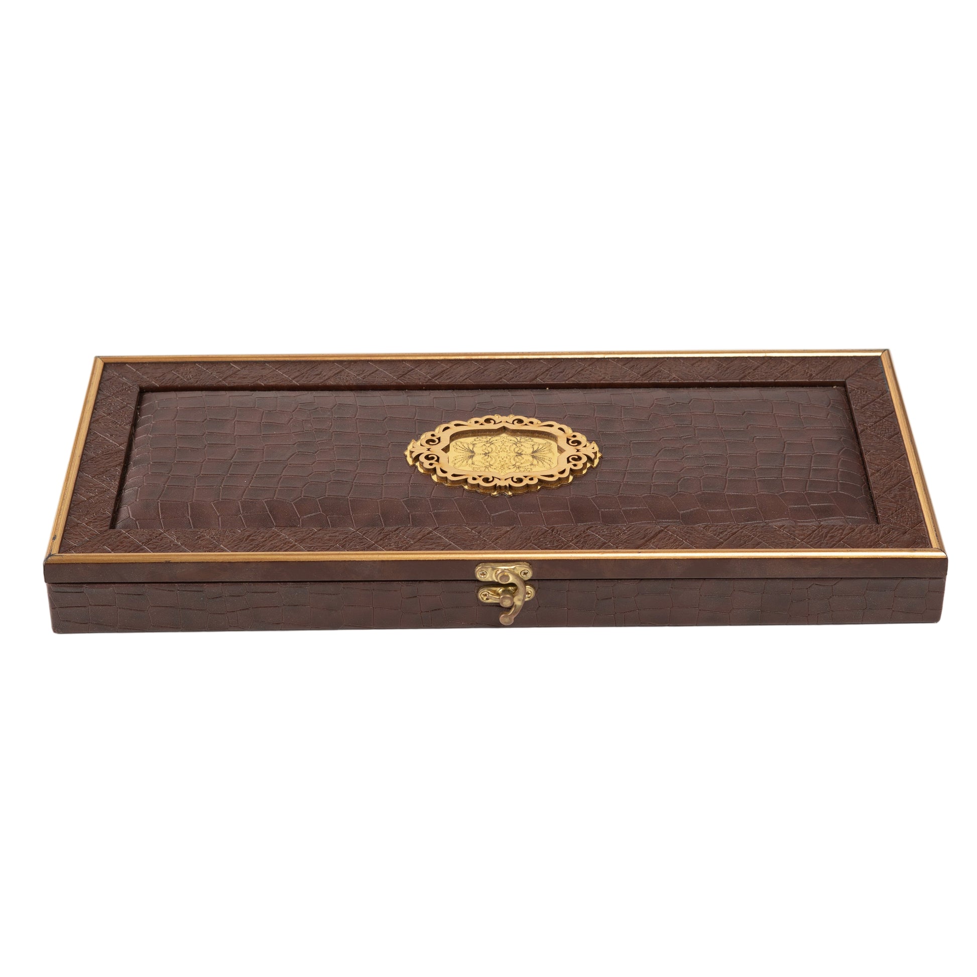 Wrapped in a rich crocodile-pattern faux leather exterior and framed with refined golden trim, this box brings sophistication to any space. The ornate gold emblem centerpiece adds a vintage royal charm, making it an ideal choice for gifting, personal storage, or premium product presentation.
