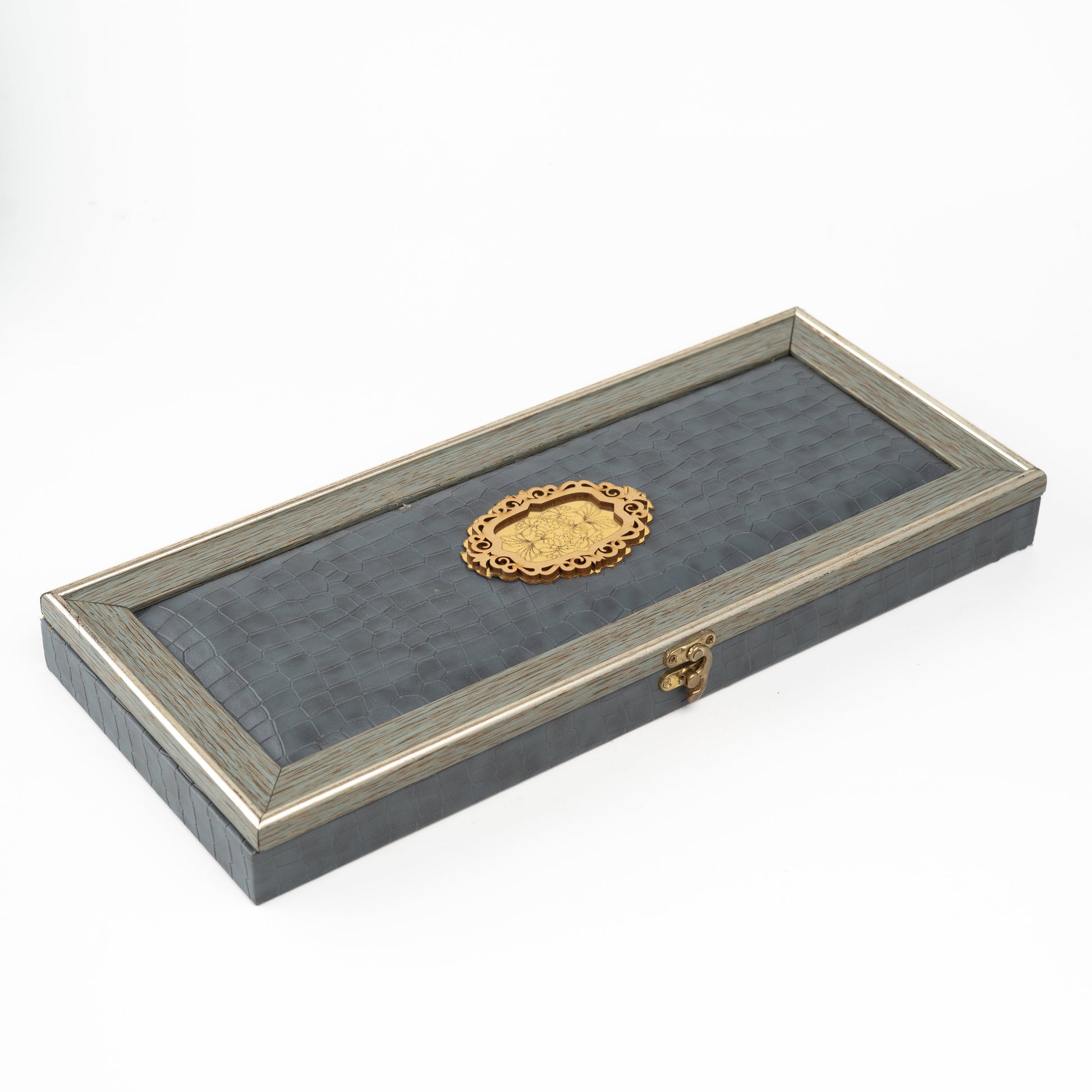 Regalia Croc Textured Wooden Box With Three Section Interior