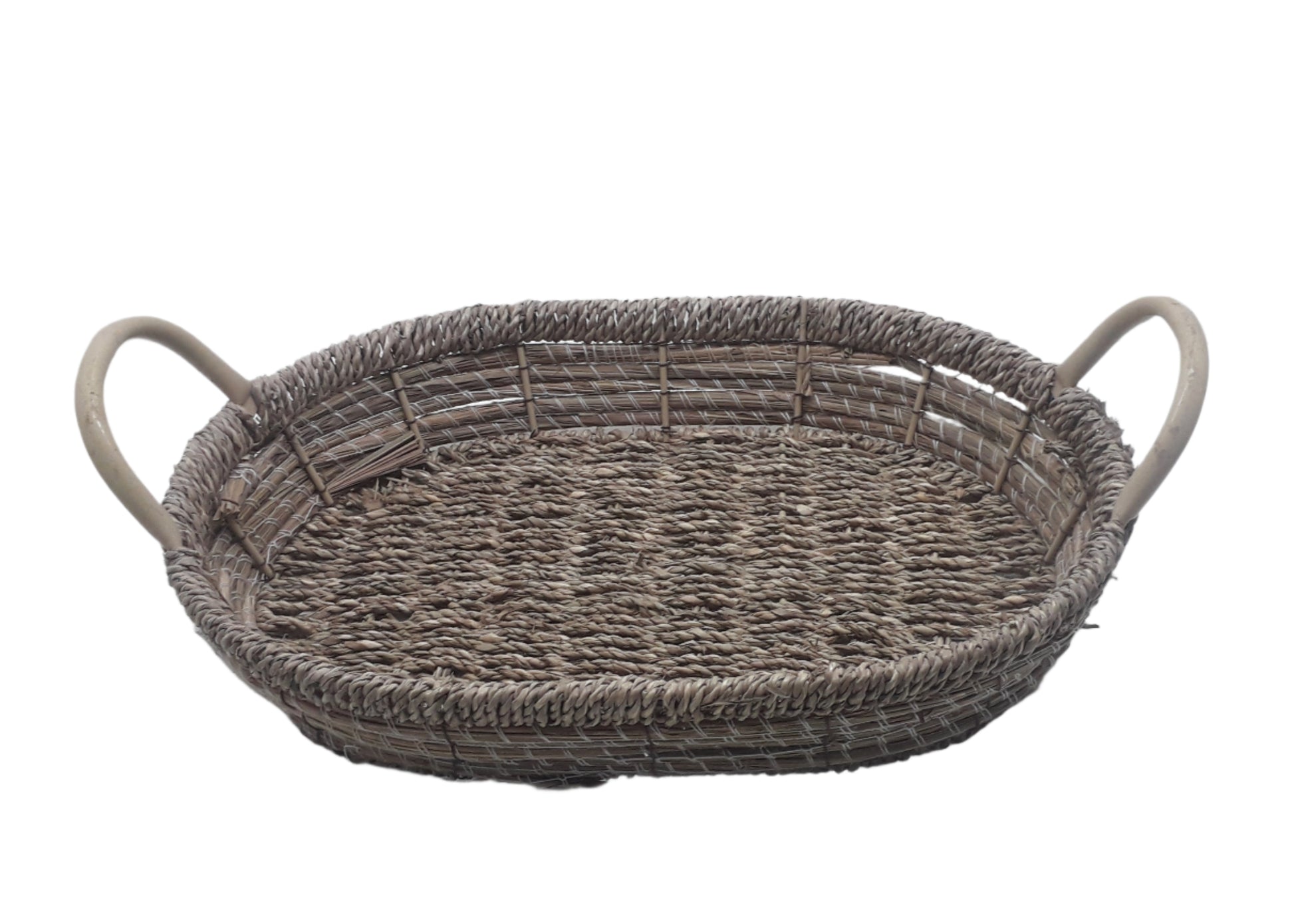 Bring a touch of natural charm and refined texture to your living space with this Classic Straw Oval Basket with Metallic Handle. Designed with meticulous craftsmanship, this rectangular tray is skillfully woven from durable natural materials, forming a tightly constructed body that balances both form and function.