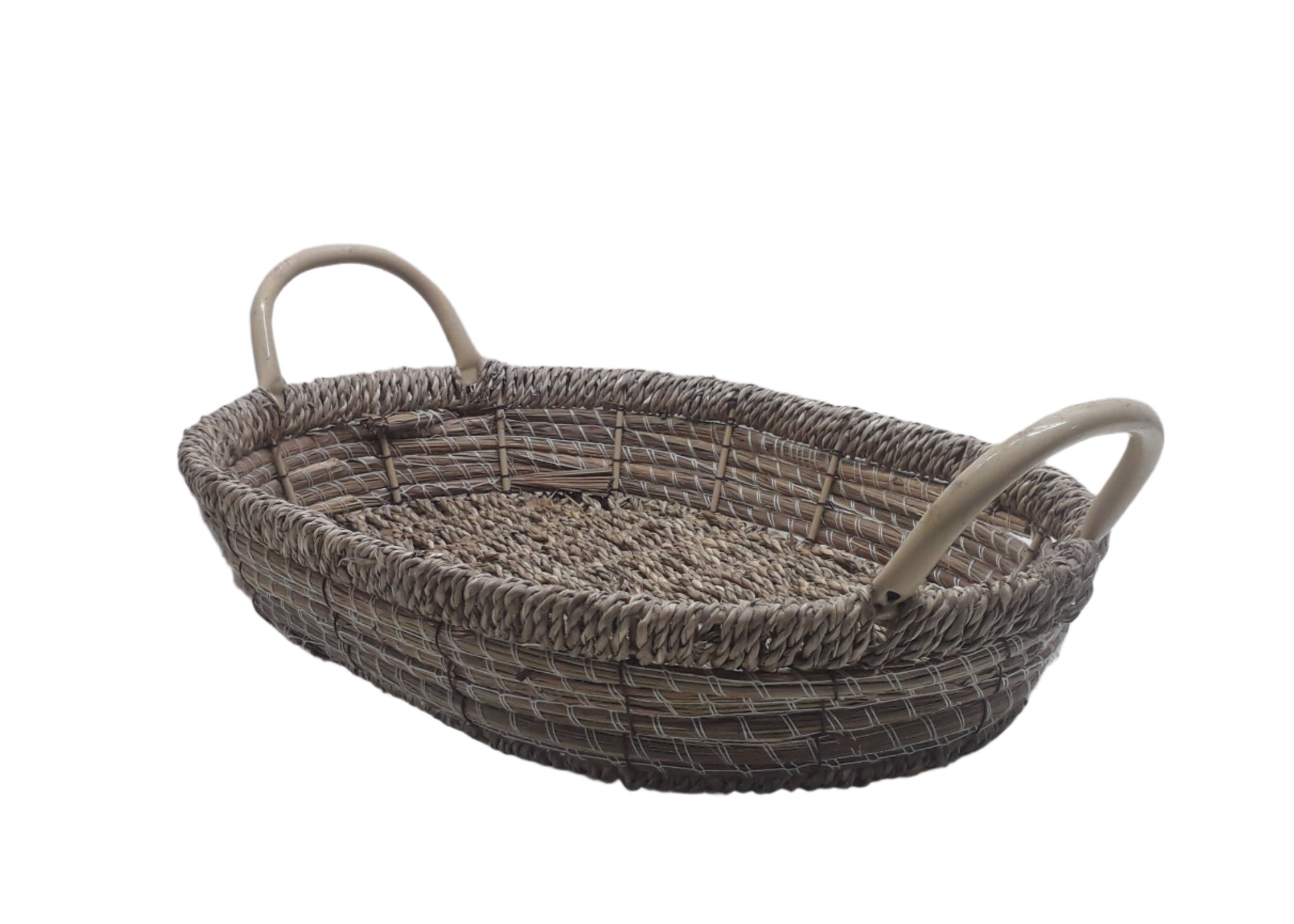 Classic Straw Oval Basket with Metallic Handle