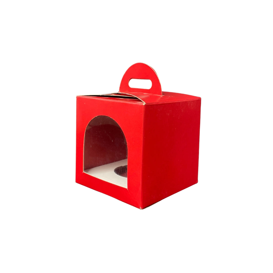 Present your cupcakes, desserts, or party favors in style with this Red Bakery Gift Box with Handle. Designed for both functionality and visual appeal, this box adds a bold touch to your bakery presentation, gifting, or event packaging. Its transparent front window showcases your creation beautifully, while the built-in handle provides convenient, secure carrying.