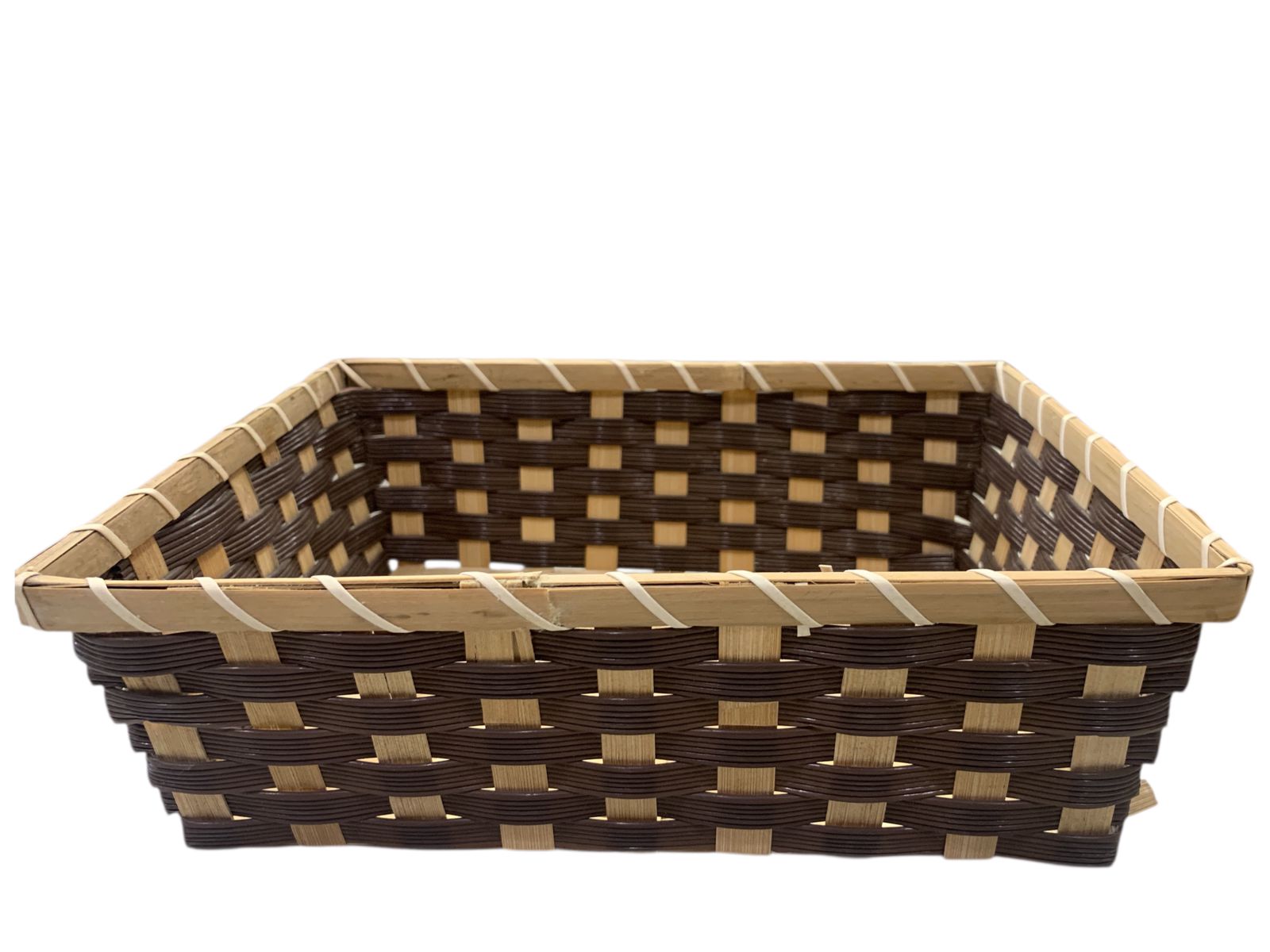 Add timeless elegance and versatile functionality to your space with this Dual Tone Bamboo Basket. Expertly crafted using natural bamboo in a striking dark brown and beige weave, this rectangular basket is ideal for stylish organization around the home or office. Whether you're tidying up countertops or creating a decorative display, this basket offers a sustainable and aesthetic storage solution.