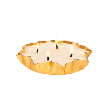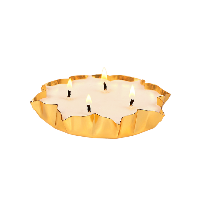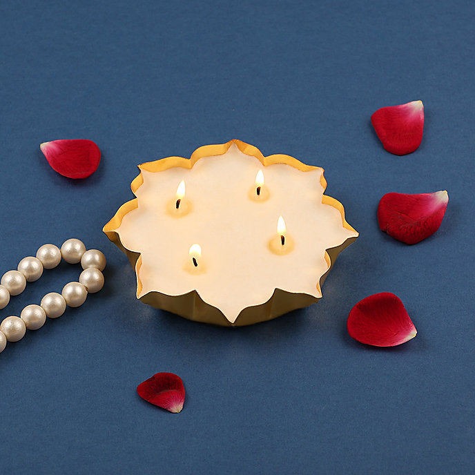 Decorative Golden Metal Lotus with Candle Inside | Luxurious Home Decor & Gifting Accent