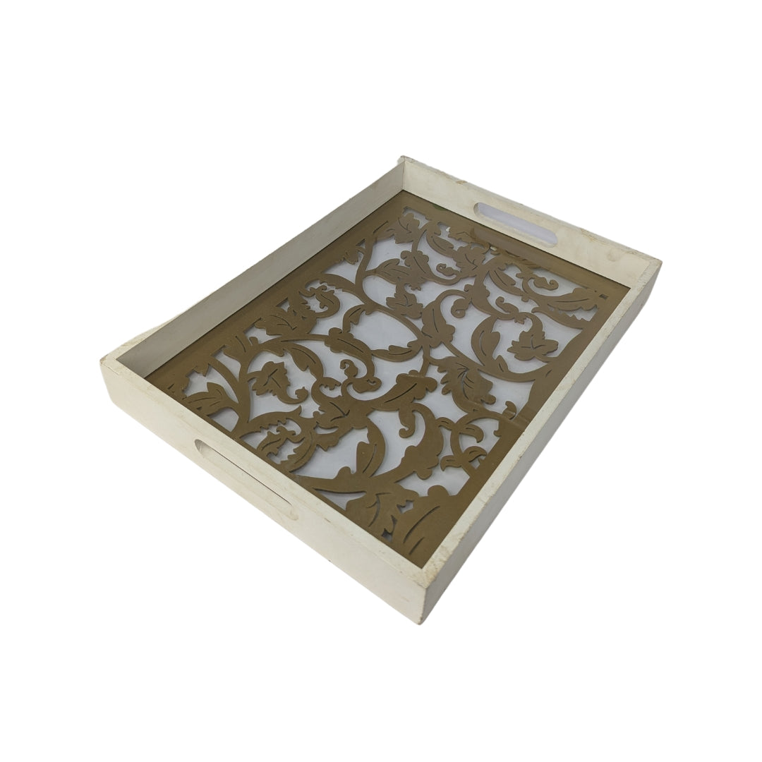 Decorative Wooden Serving Tray with Floral Cutwork Design