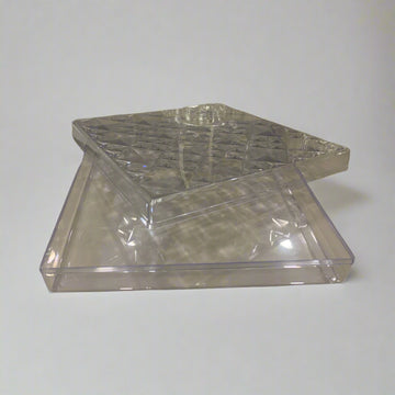 This Square Diamond Texture Crystal Box offers an elegant and sophisticated way to present chocolates, dry fruits, or candies. Its crystal-clear design showcases your gifts beautifully, making it perfect for special occasions. Crafted for durability and style, this box enhances the gifting experience by combining practicality with a refined aesthetic. Ideal for those seeking a premium presentation solution.