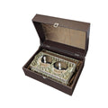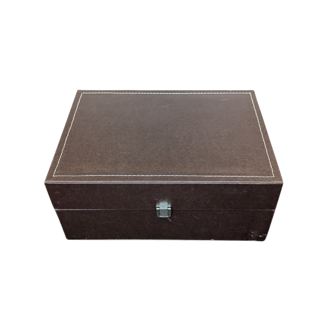 Packaged in a luxurious leather-textured brown gift case