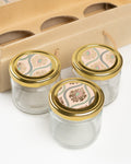 The box opens to reveal two dedicated compartments, each designed to securely hold jars such as honey, jam, dry fruits, spices, candles, or handmade skincare products. The snug fit ensures safe transportation while adding a sophisticated touch to your presentation.
