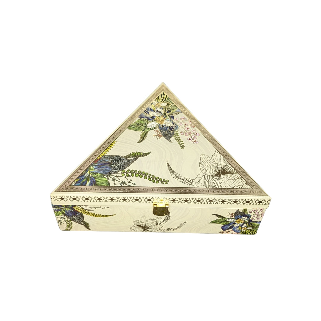 Presenting the Floral Elegance Triangular Crysta Box, a beautifully crafted luxury packaging solution designed to make gifting truly special. With its unique triangular shape, satin-lined interior, and artistic floral-themed exterior, this box blends modern design with timeless sophistication.