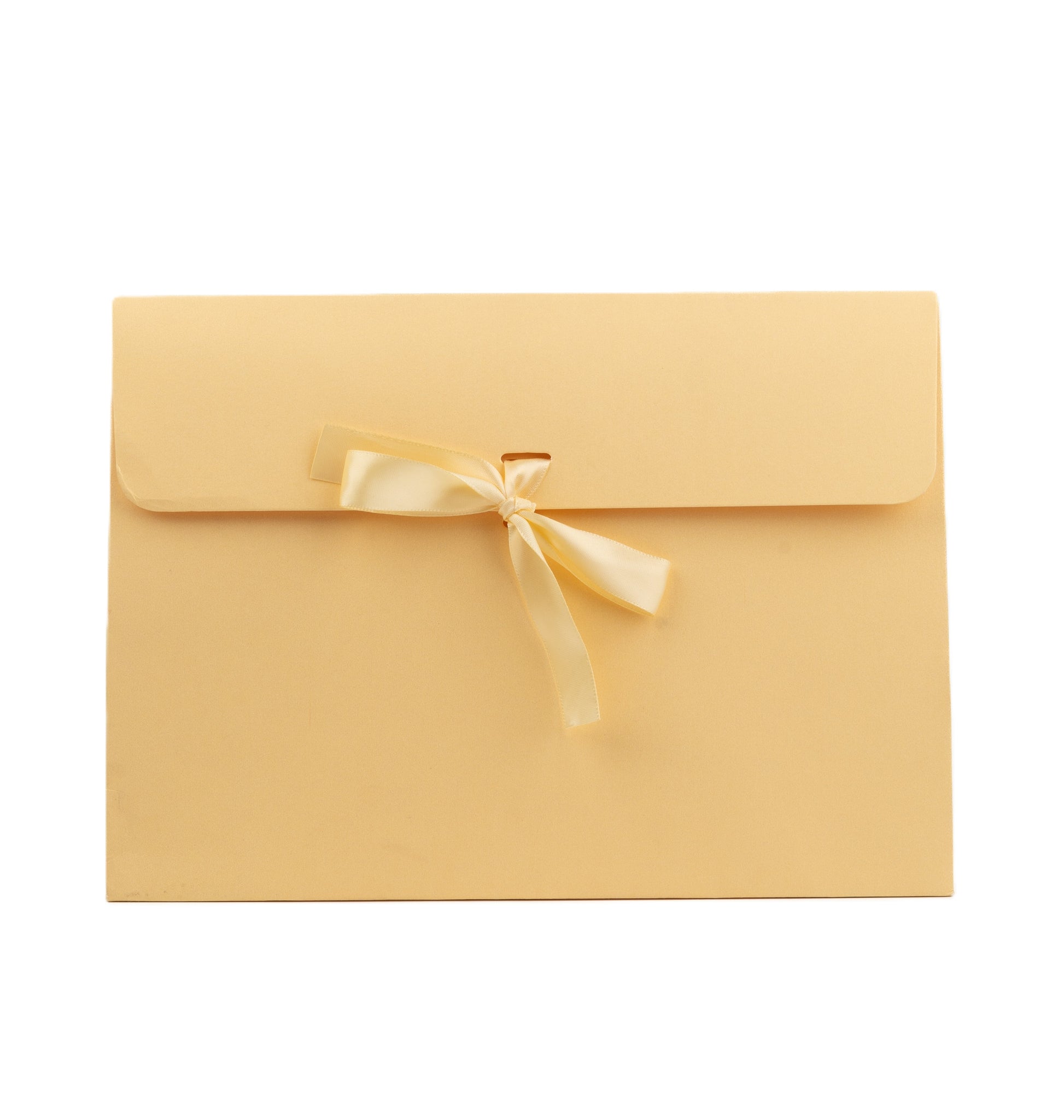 Yellow Envelope Foldable Paper Box with Ribbon Tie