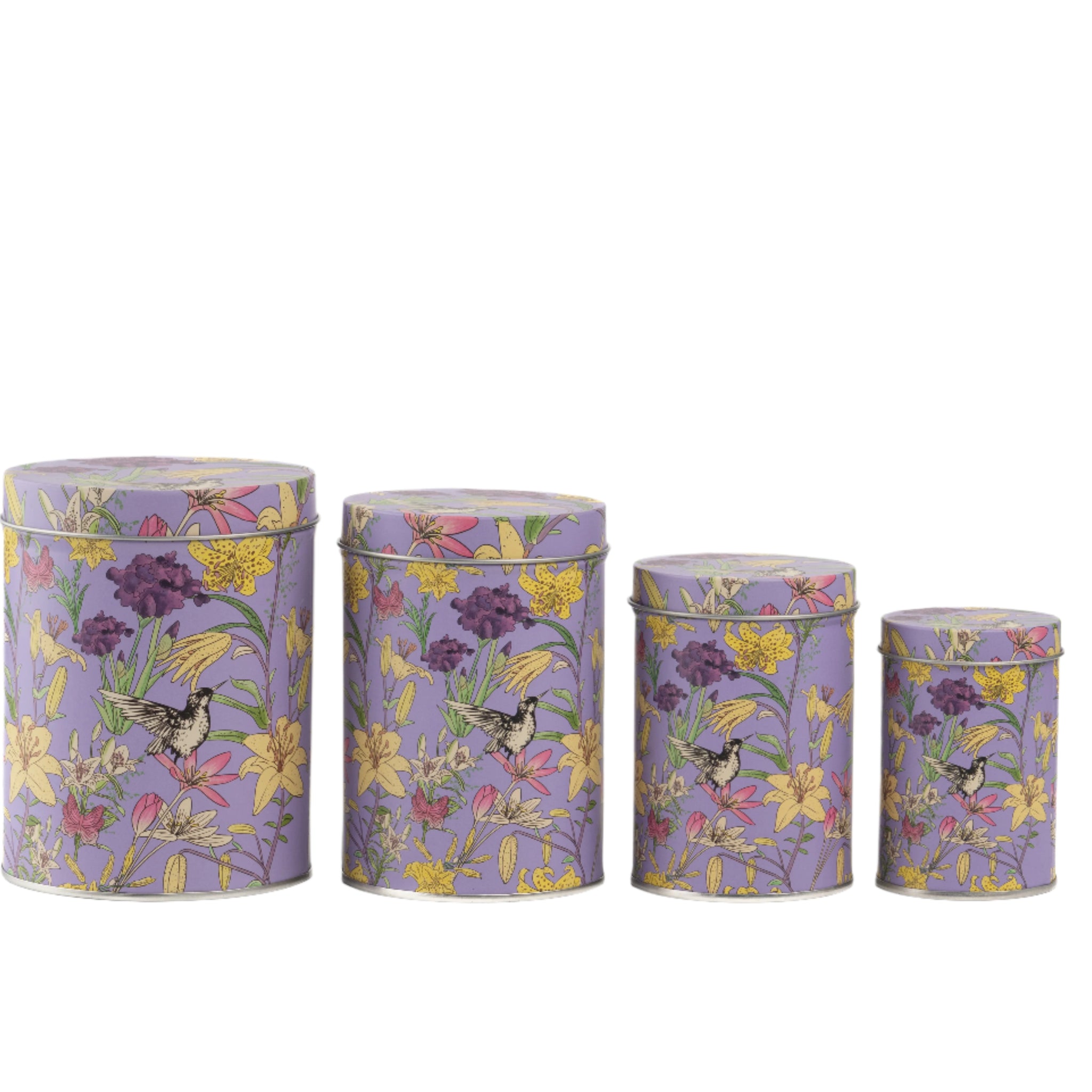 Elegant Hummingbird Floral Tin Metal 4 Container Set