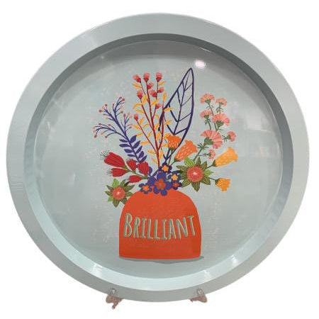 Add a splash of color and positivity to your home with our "Colourburst Positive Vibes Floral Tray". Featuring a vibrant bouquet of flowers, and a positve quote, this round tray is more than just functional—it’s a feel-good statement piece! Perfect for serving snacks, displaying decor, or gifting someone a dose of daily joy.