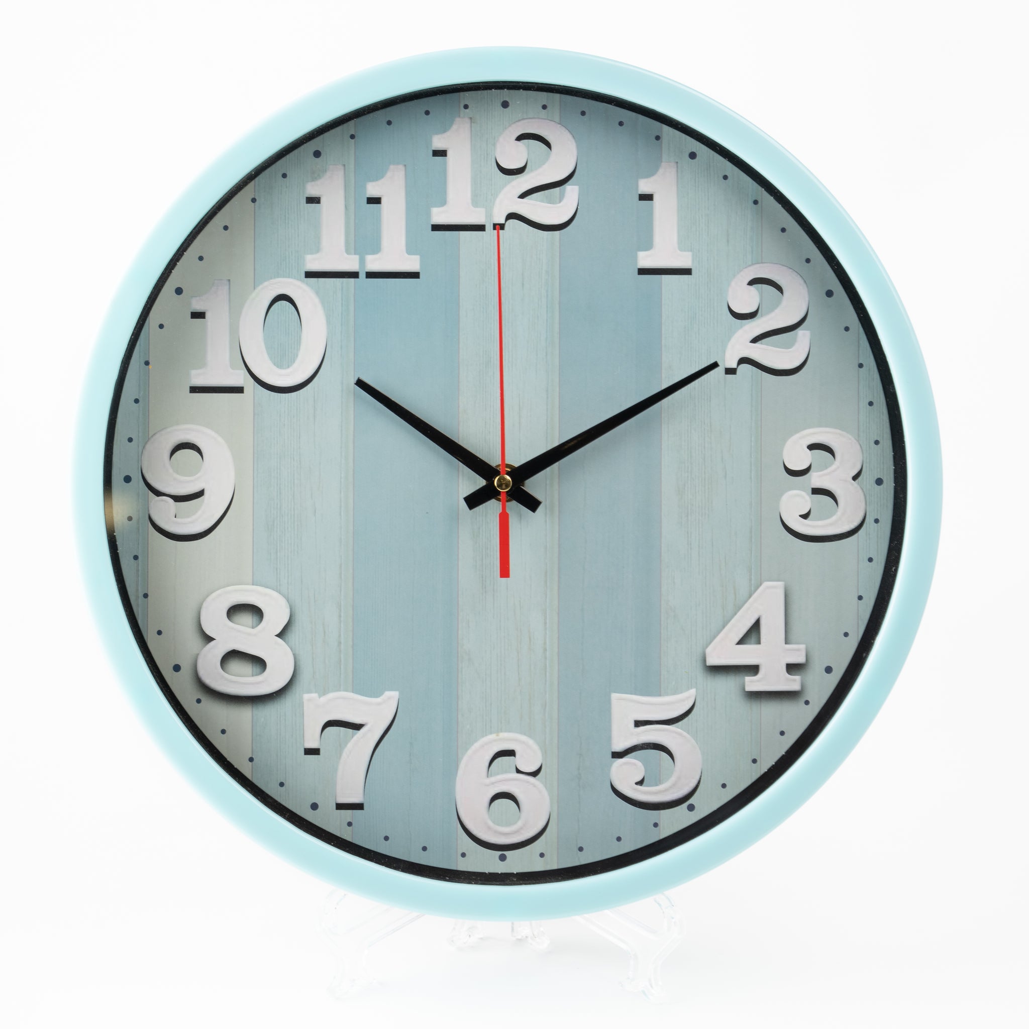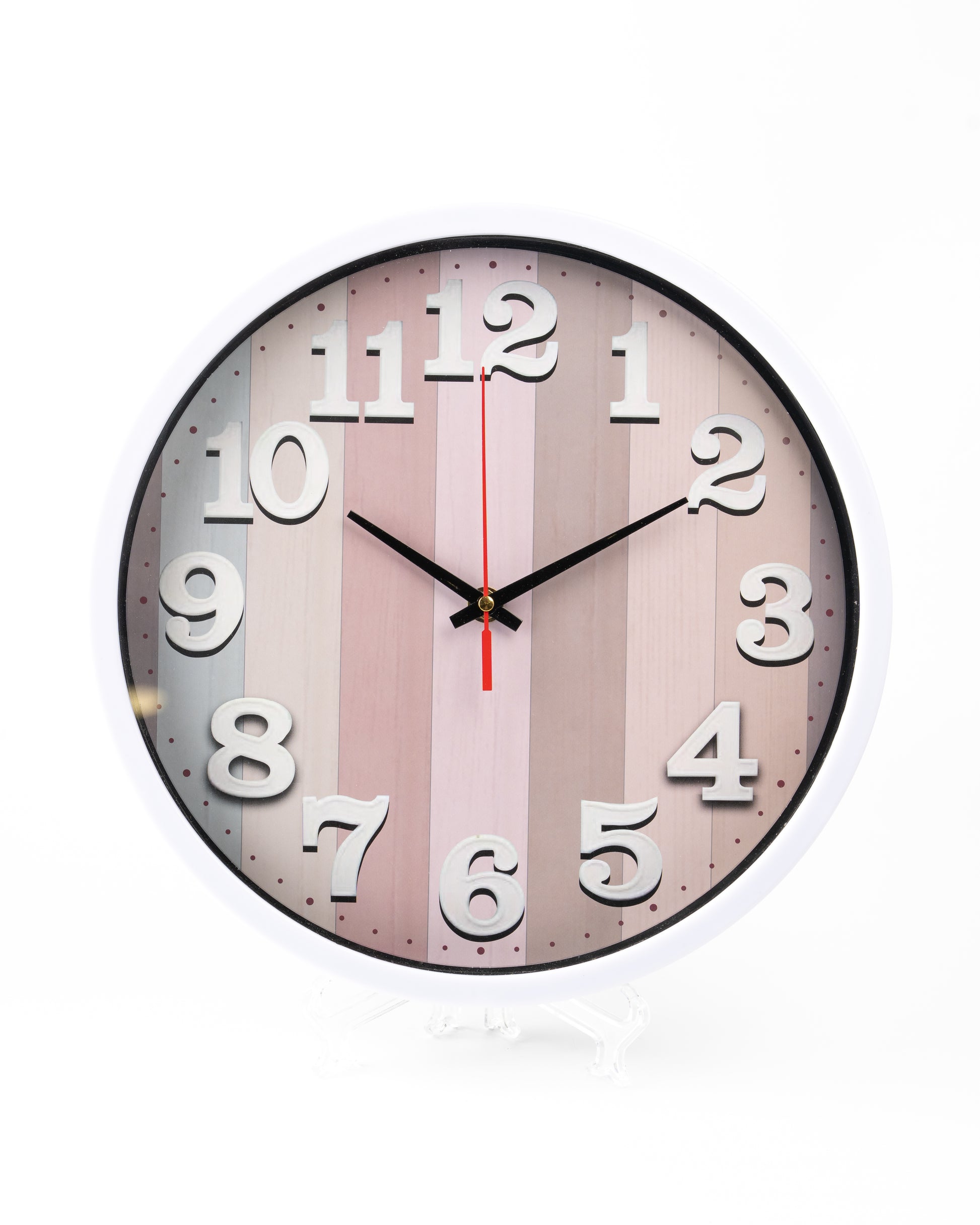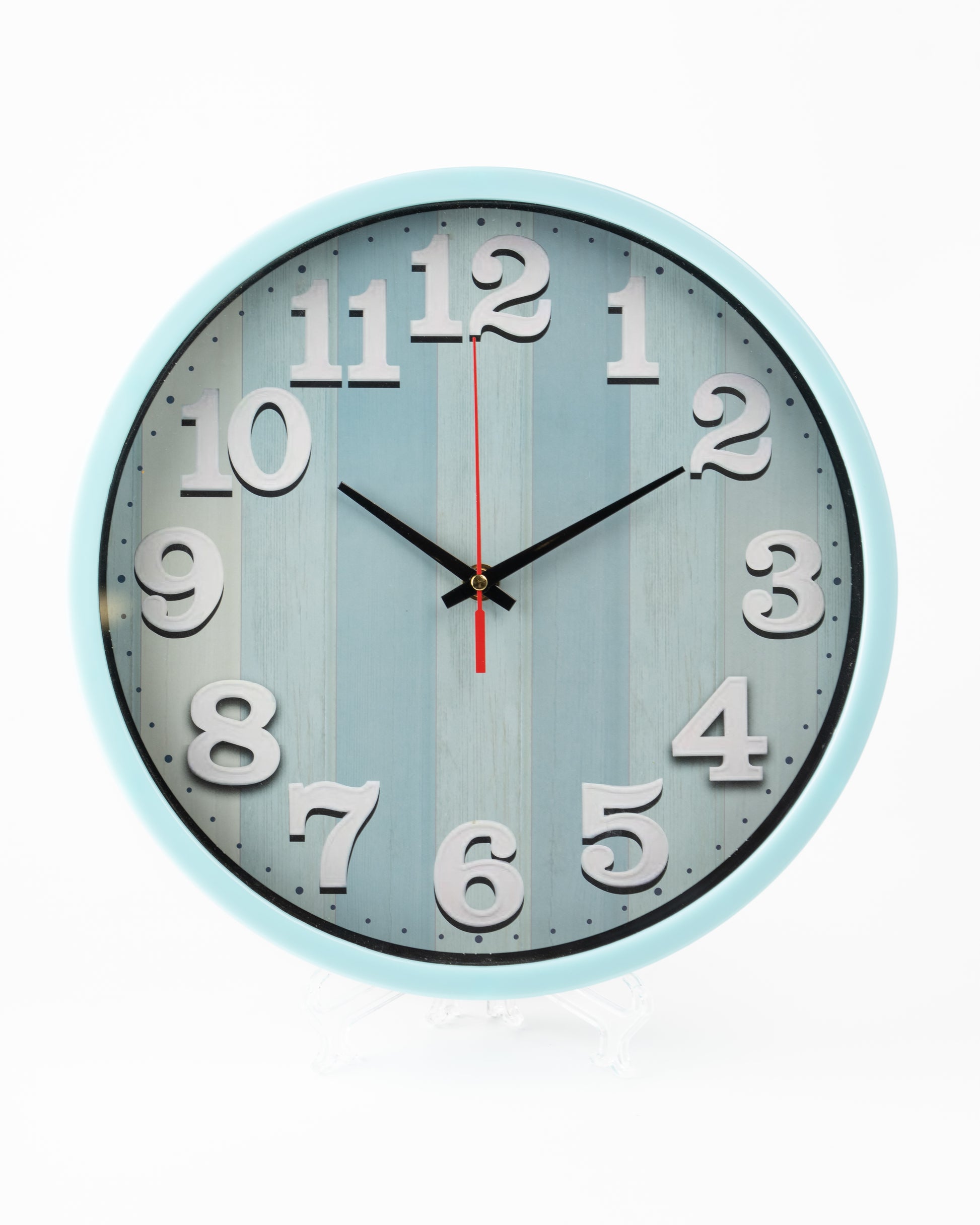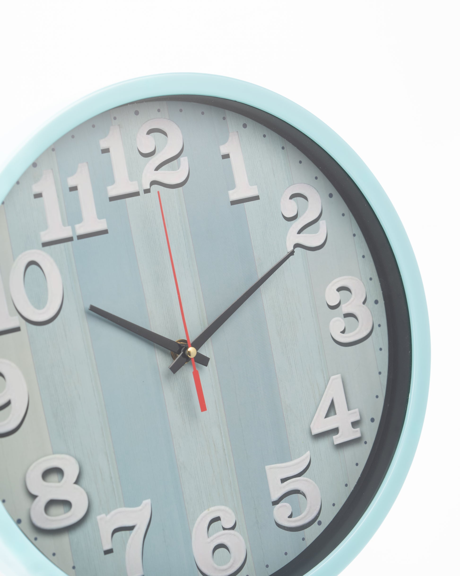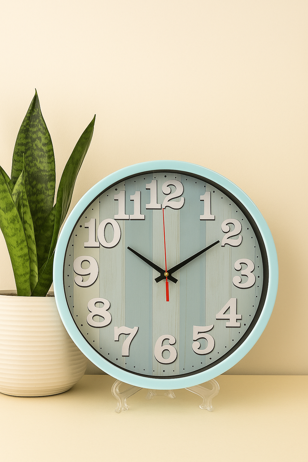 Add a soothing touch of color and elegance to your space with these Sky Blue and soft pink striped wall clocks.. Designed with a pastel-toned frame and vertical wood-like stripes in various shades of blue, it brings a cool and calming vibe to any room. The large, raised white numerals provide excellent visibility, blending timeless design with practical functionality.