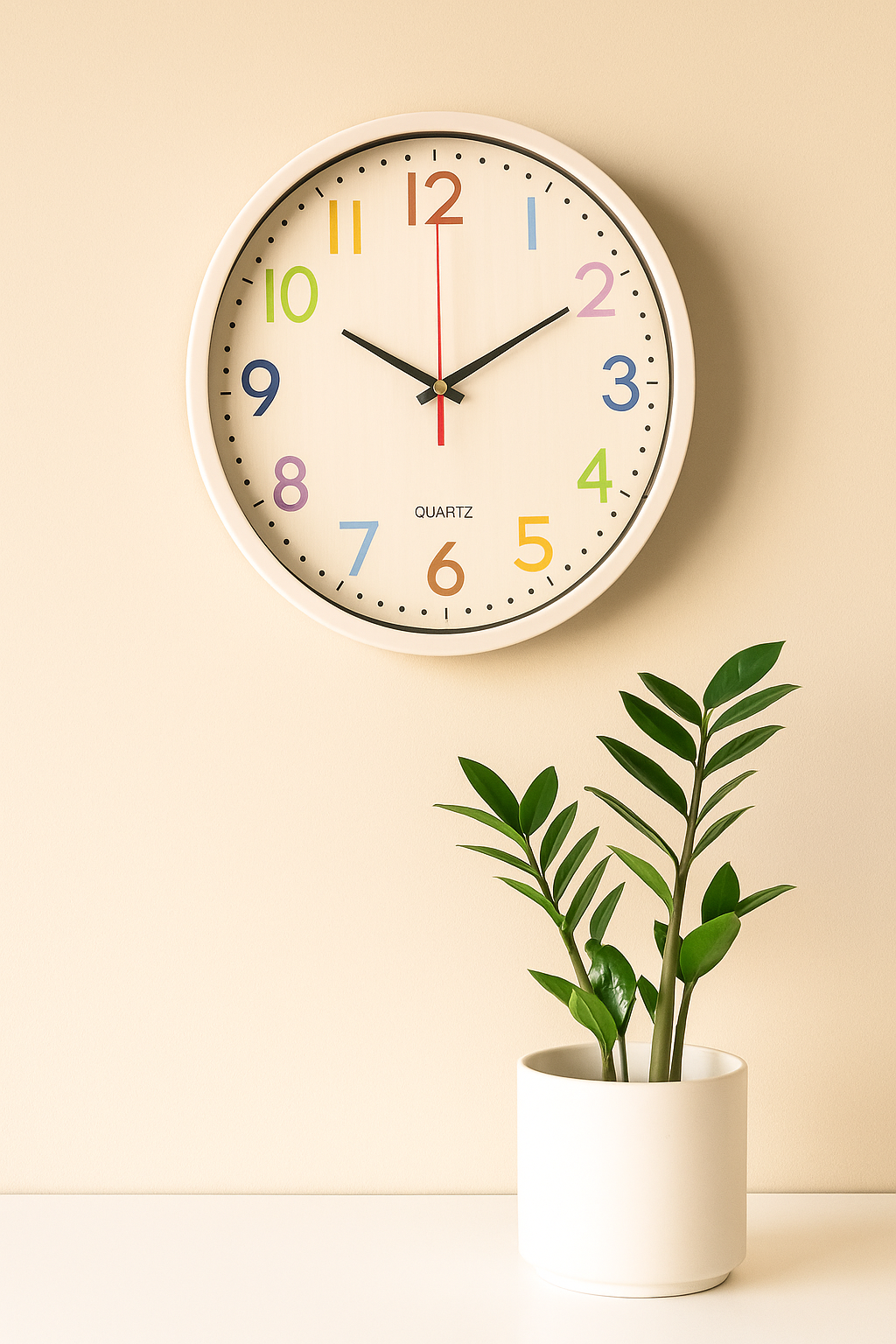 Perfect for living rooms, bedrooms, kitchens, offices, classrooms, and cafés, this clock is both decorative and functional. Whether you need to manage your daily schedule or enhance your interior decor, the Rainbow Font Wall Clock is your go-to timekeeping solution.