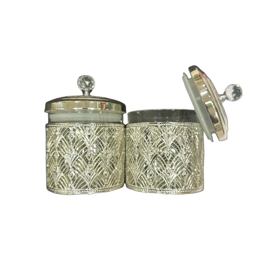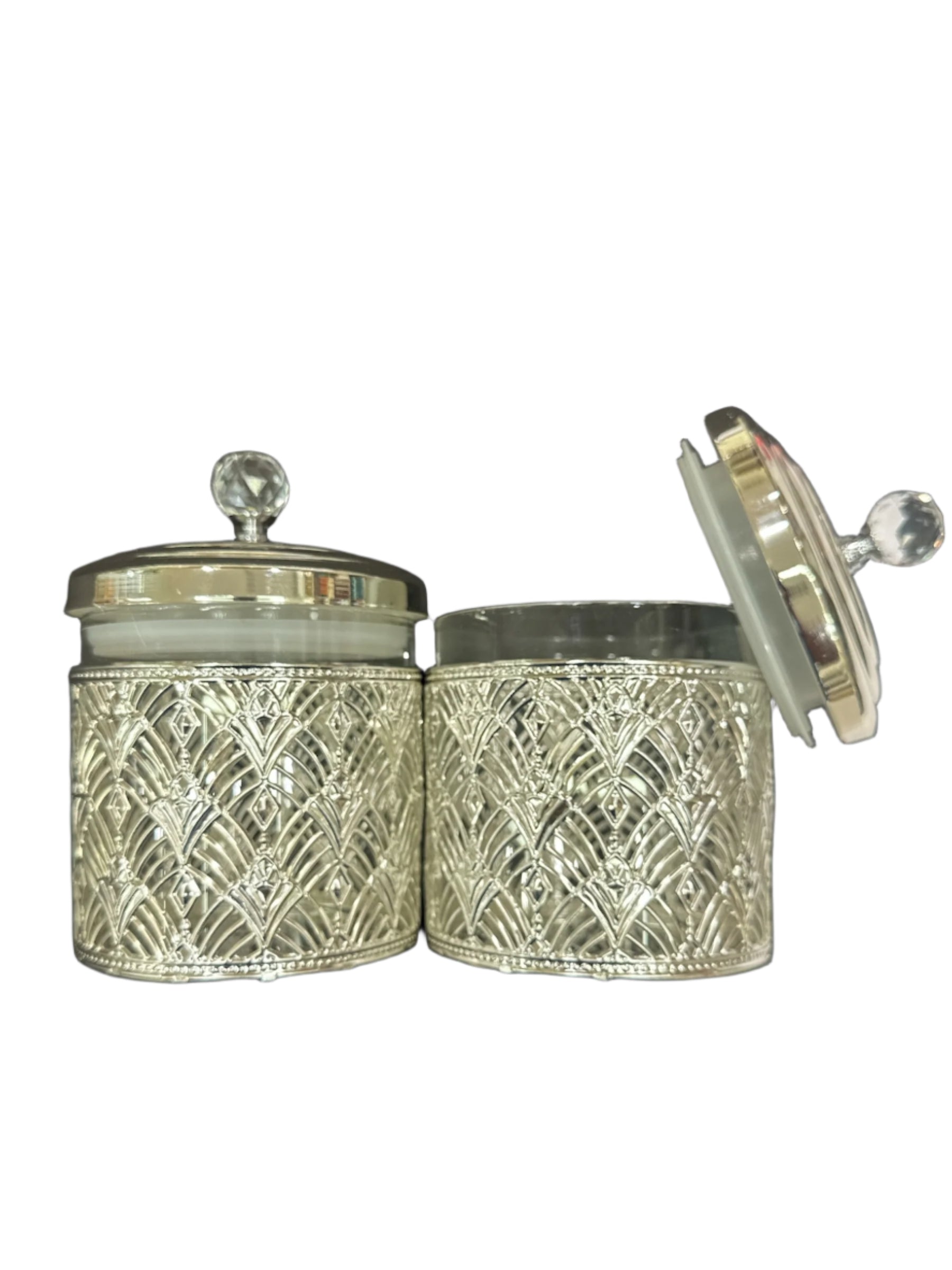 • Elegant Design: Each jar features a refined silver trim and ribbed glass design, combined with a sparkling crystal knob for a luxurious look.