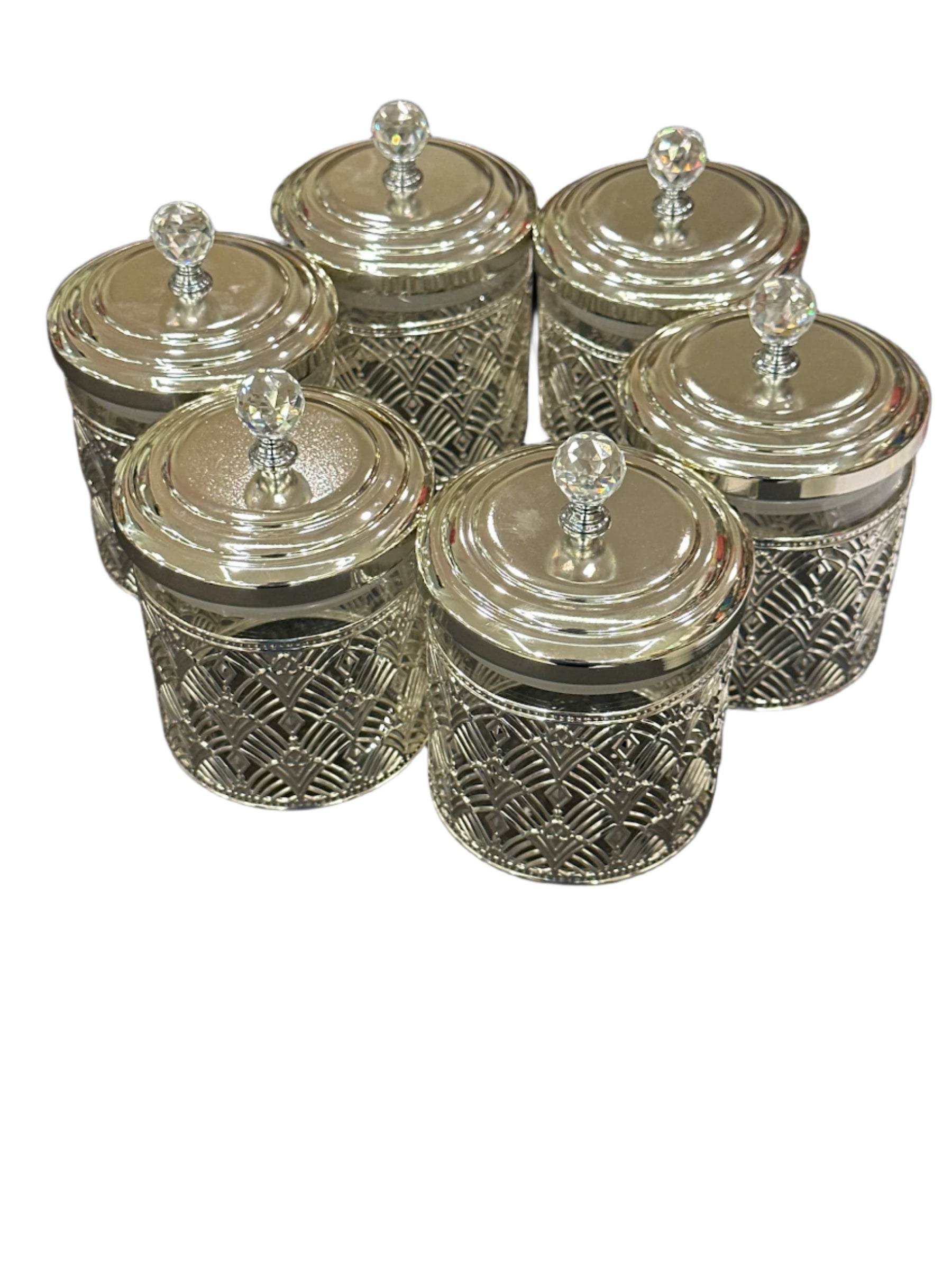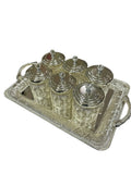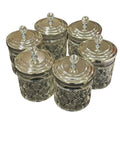 Glamorous Silver & Crystal 6 Glass Jars Set with Tray