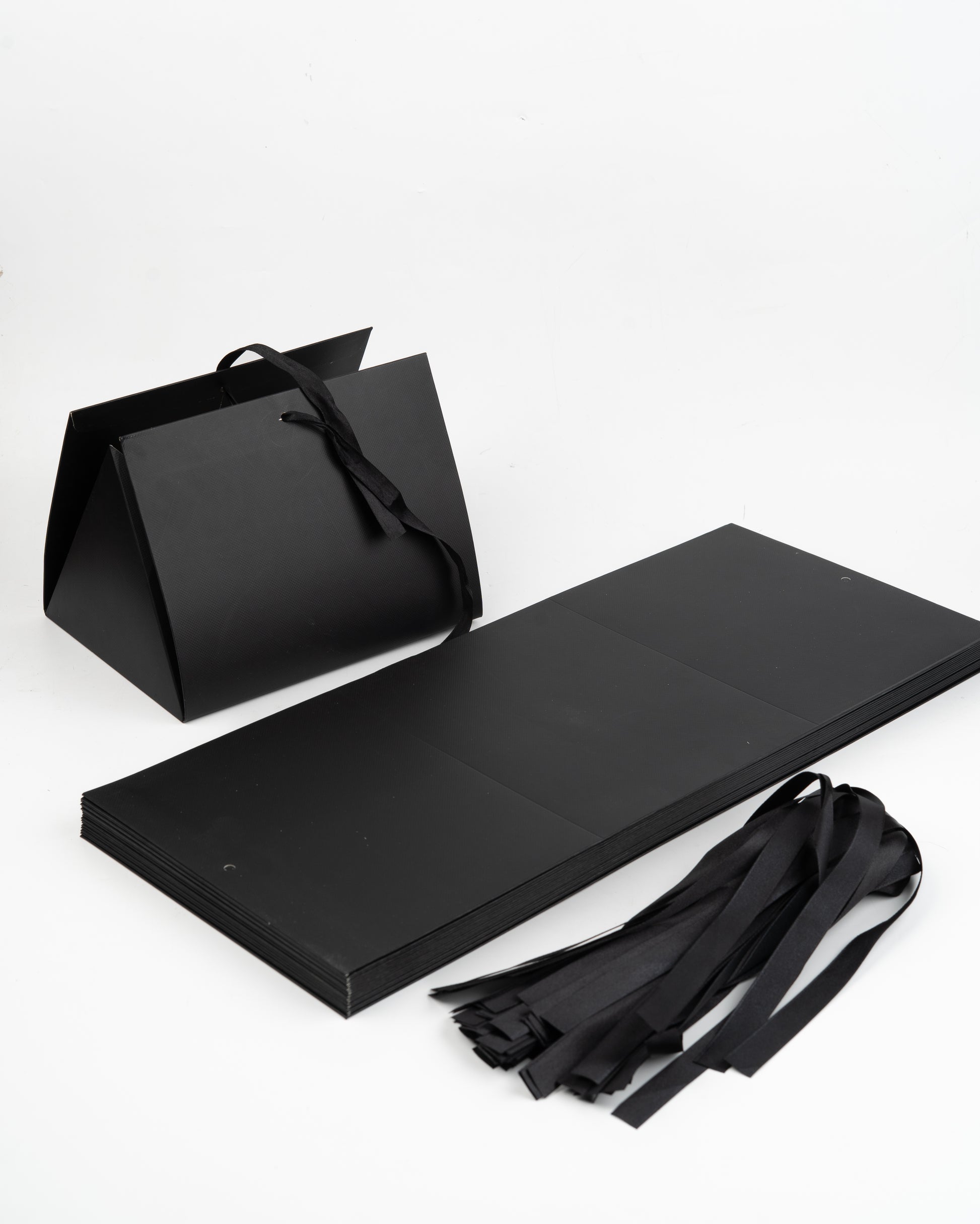 The satin ribbon closure adds a touch of elegance, while the collapsible design ensures easy storage and transport without compromising on style. Available in stunning color options including silver, gold, dark red, and classic black, it’s the ultimate solution for beautiful and practical packaging.