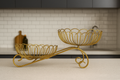 Golden Double Tiered Wire Fruit Basket Stand