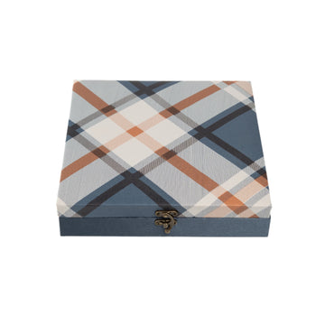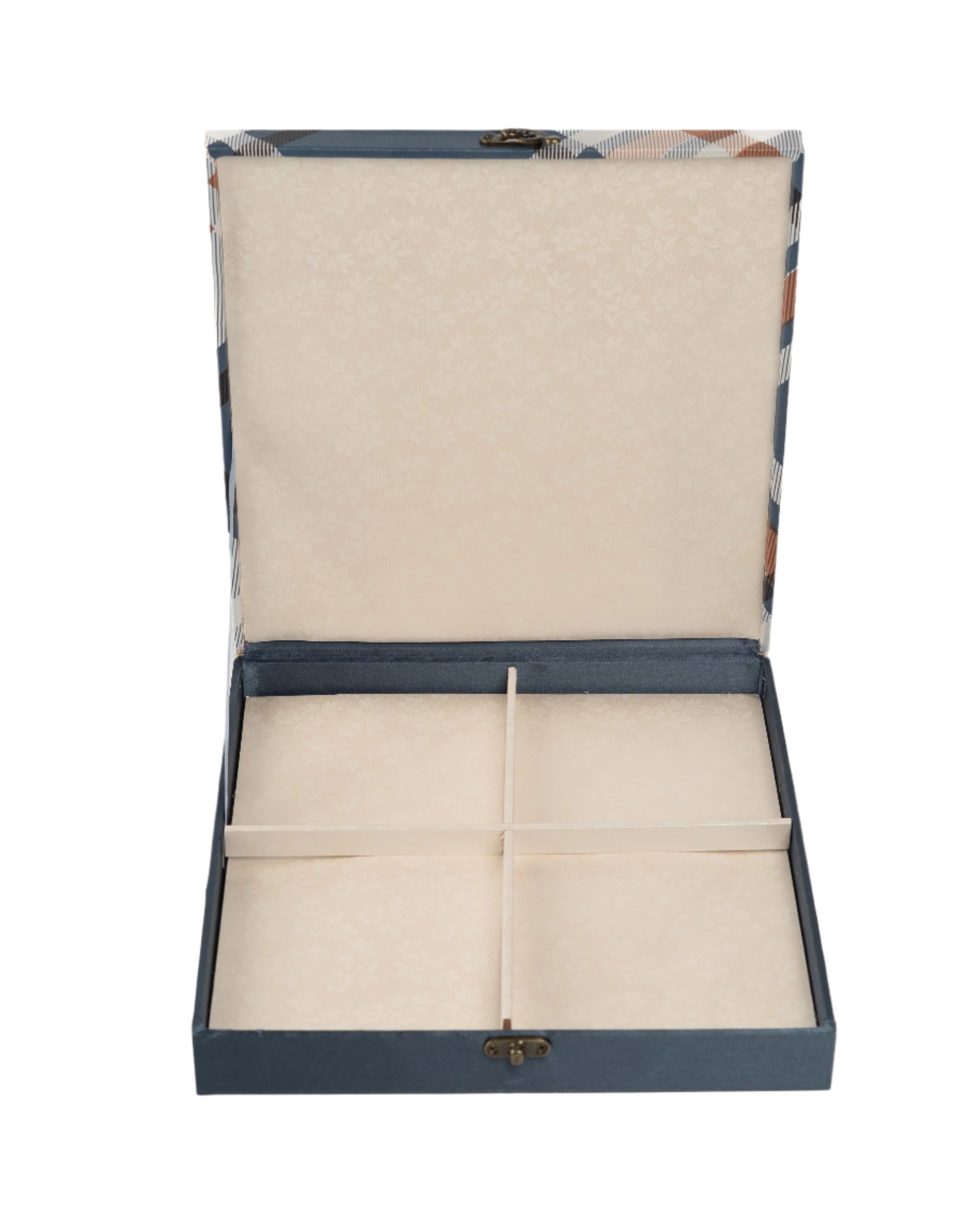 Upgrade your gifting or organizing experience with this Modern Plaid Hamper Box with 4 Compartments, wrapped in a sophisticated plaid print featuring hues of navy blue, warm rust, and creamy beige. The clean lines of the tartan pattern give it a modern, unisex appeal—ideal for both festive gifting and personal use.