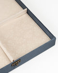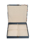 Inside, the box reveals a soft beige interior with a subtle floral imprint, complete with four equally divided compartments. Perfect for storing dry fruits, sweets, jewelry, accessories, or stationery, this box blends practicality with style. The vintage-style latch adds a classic touch, keeping contents secure while elevating the aesthetic.