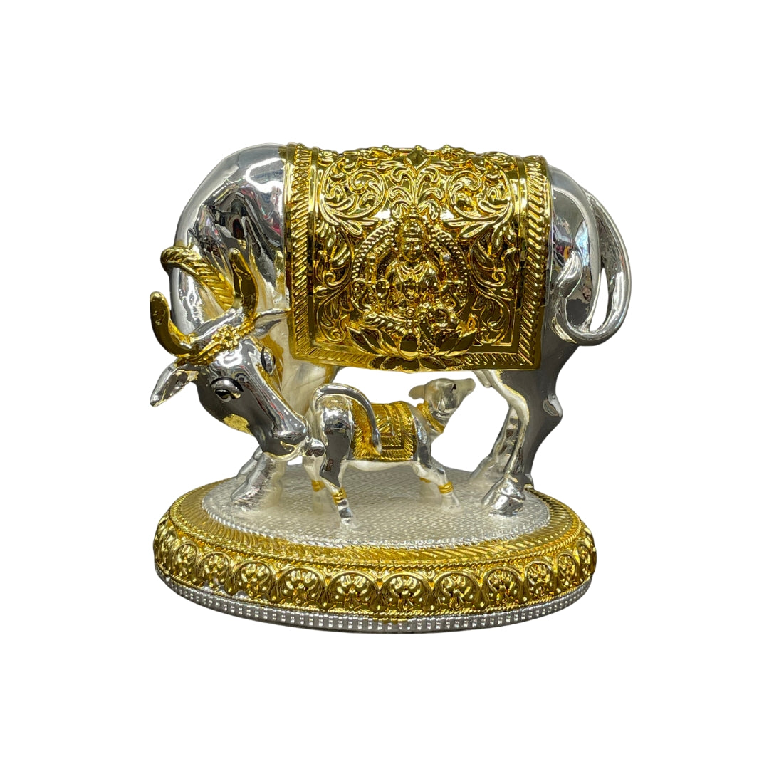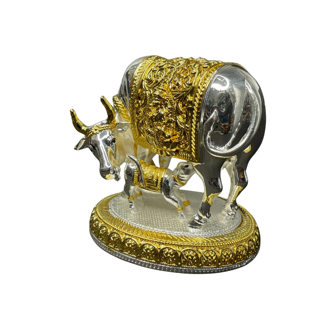 Elevate your home, temple, or office decor with this Dual Tone Kamdhenu Statue, a masterpiece crafted to perfection with exquisite detailing. The statue features a stunning dual-tone finish—radiant silver complemented by rich gold embellishments—symbolizing prosperity, protection, and divine abundance.