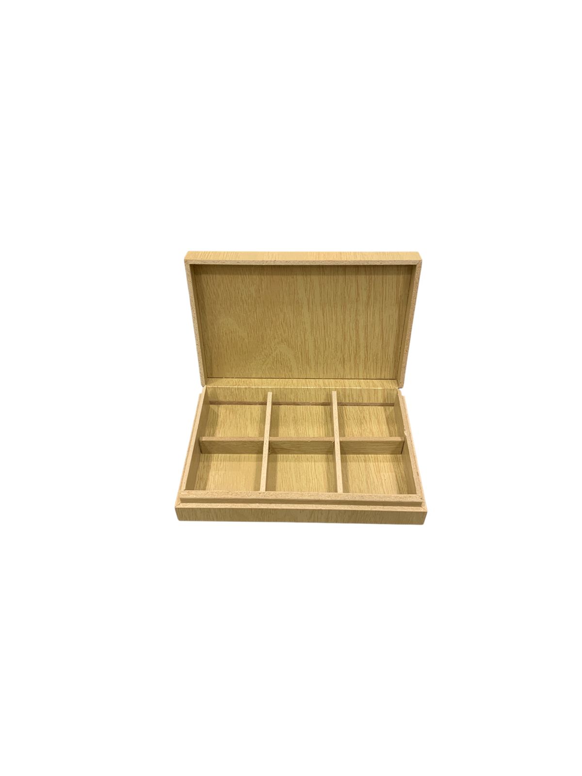 Elevate your gifting and serving experience with this elegantly MDF wooden box featuring six spacious compartments. Made from high-quality natural wood with a smooth finish, this box combines functionality with aesthetic appeal. Its clean design and warm tone make it perfect for presenting dry fruits, chocolates, sweets, or even tea bags.