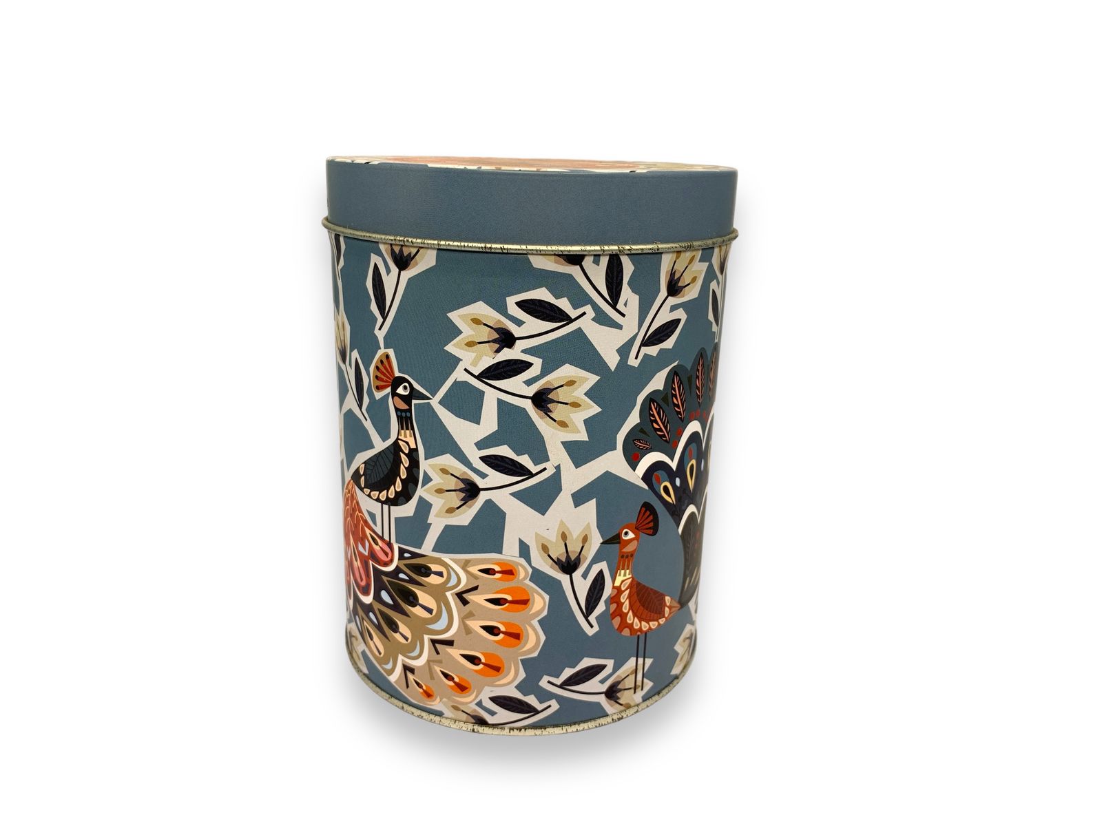 Bring charm and elegance to your home with this Peacock Glimpse Round Metal Tin Container. Featuring a vibrant peacock and floral pattern, this round tin is perfect for storing tea, coffee, cookies, small trinkets, or as a unique decorative accent. The secure lid keeps contents fresh, while the artistic print adds a stylish touch to your kitchen, living room, or office. Both functional and decorative, this tin makes a wonderful gift or keepsake.