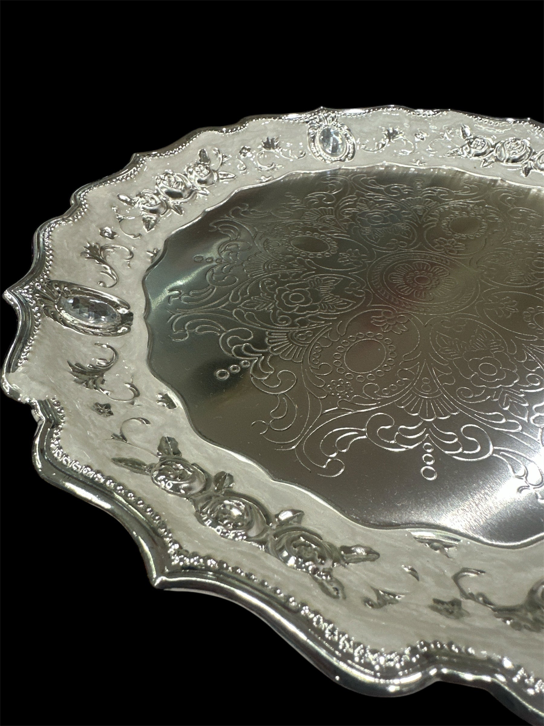 • Intricate Floral Engravings: The thali showcases detailed floral motifs and embellishments along the edges, making it an exquisite centerpiece for any religious setting.
