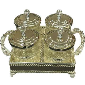 Glamorous Silver & Crystal 4 Glass Jars Set with Tray