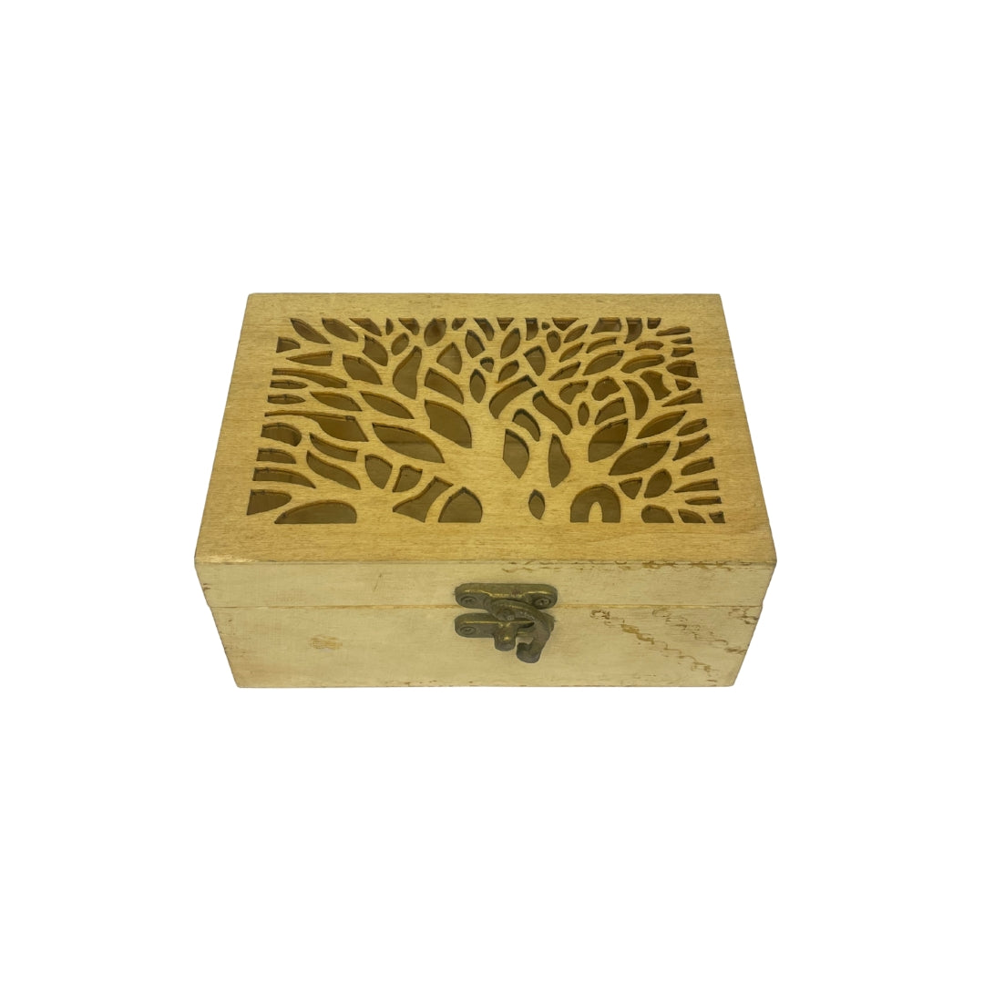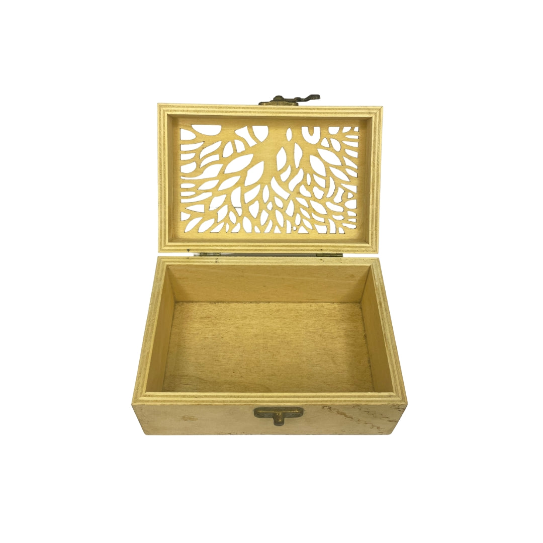 Inspired by nature’s elegance, this Tree of Life Design Wooden Box features an intricately laser-cut lid designed with a flowing tree and leaf pattern. Its natural wood finish and refined craftsmanship make it both a decorative accent and a practical storage solution for everyday treasures.