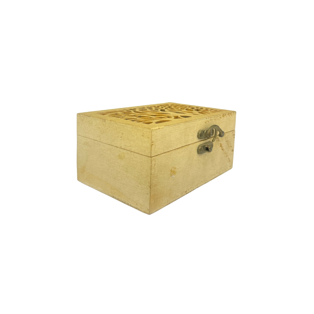 The spacious rectangular interior is perfect for organizing jewelry, small accessories, keepsakes, craft items, or gifting essentials. A sturdy vintage-style metal clasp ensures secure closure, adding charm and functionality to the piece.