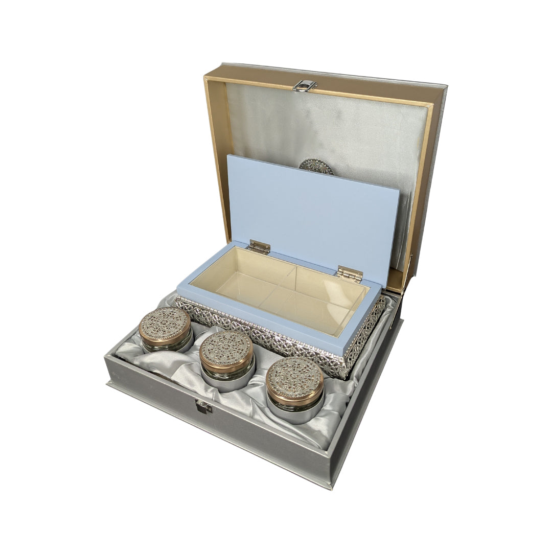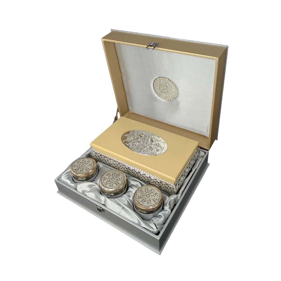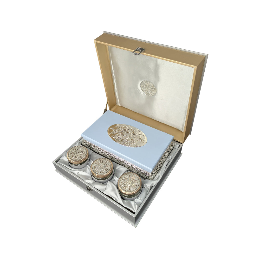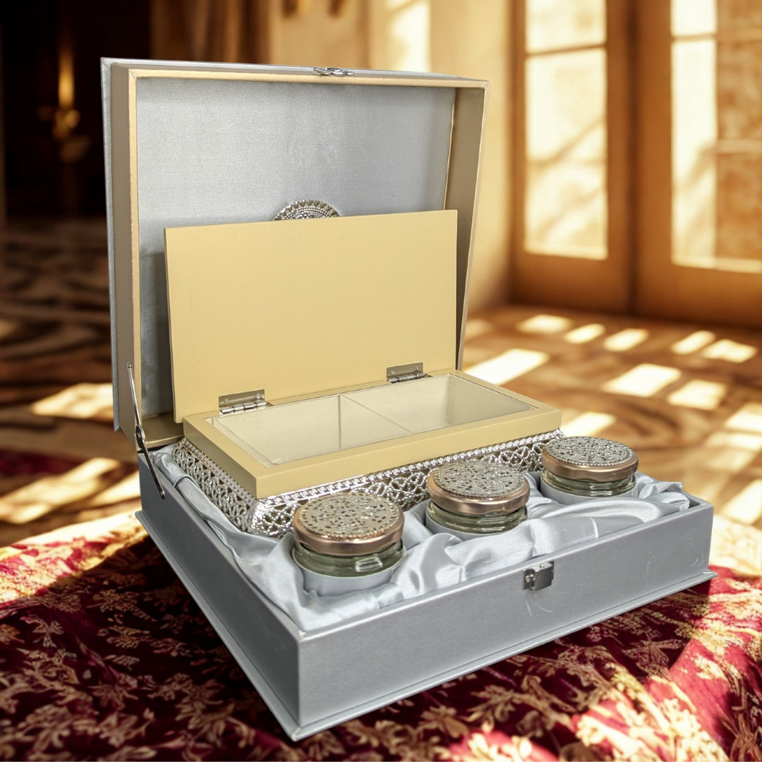 Premium Satin Case Gift Set Box with 3 Ornate Jars