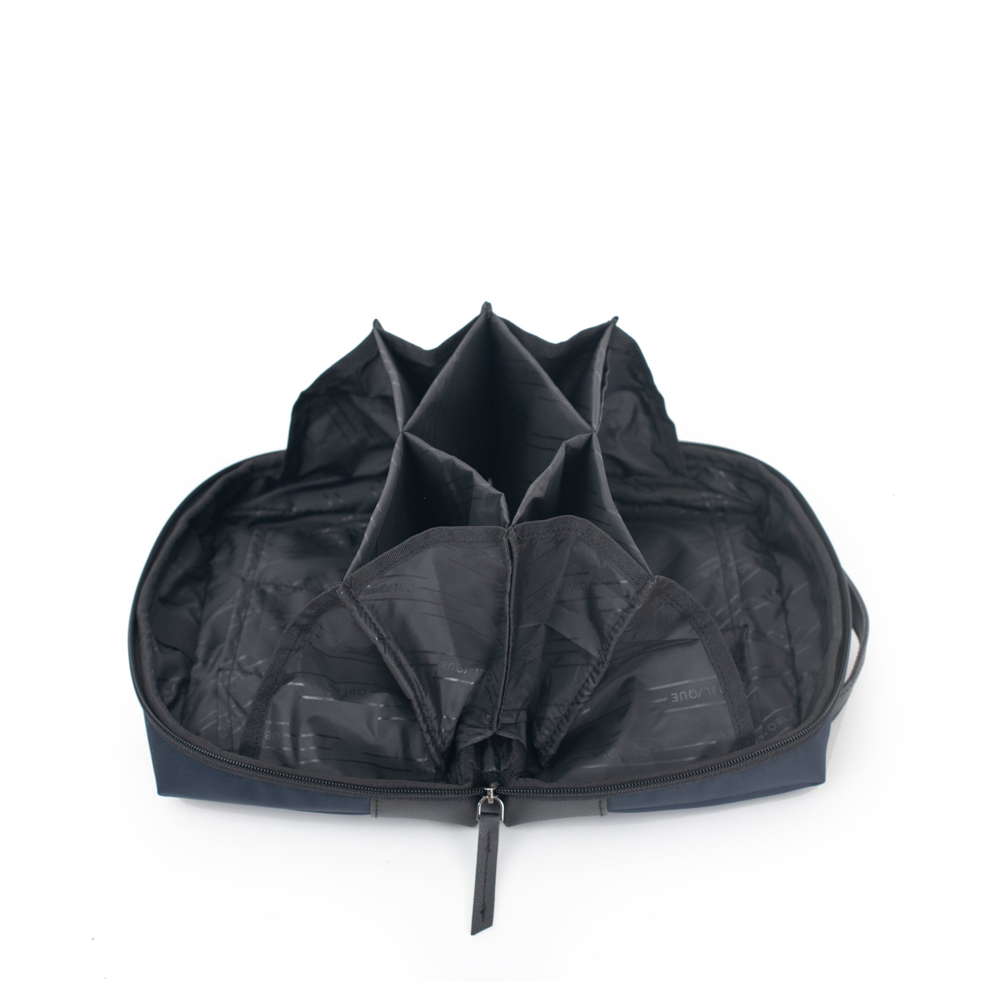 The smart origami-style interior unfolds to reveal a system of structured pockets and holders, ensuring every item stays secure and within reach. Whether you're commuting to the office or traveling abroad, this minimalist tech bag keeps your essentials neatly arranged and easy to access.