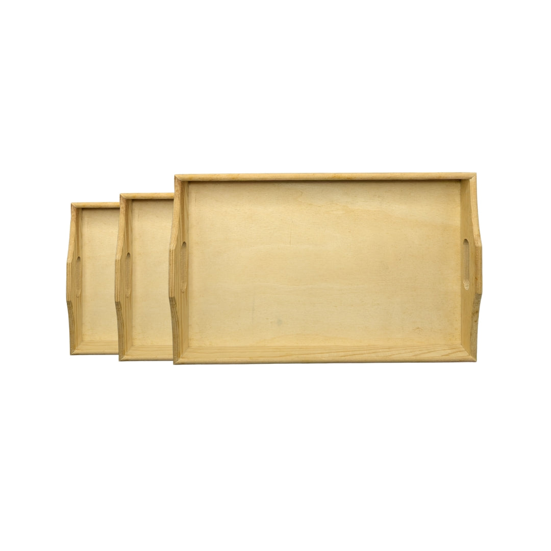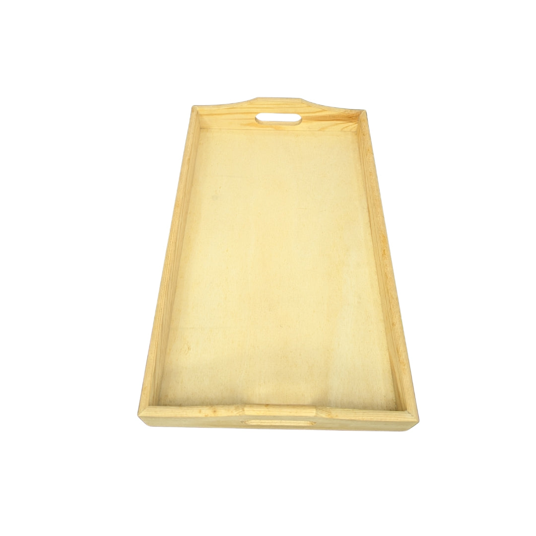 Rectangular Wooden Serving Tray with Handle Cutouts