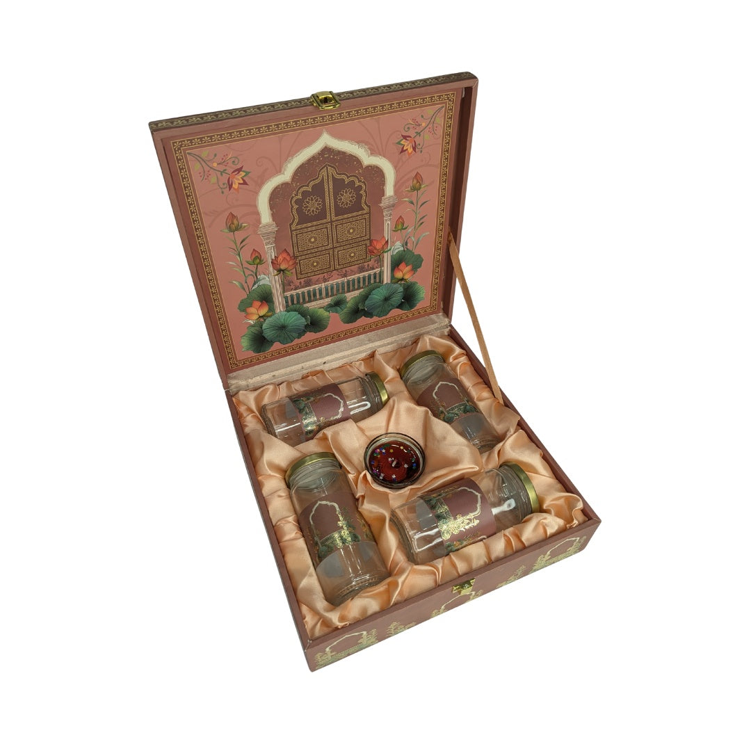 Royal Haveli Hamper Box 4 Glass Jars And Aroma Candle