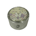 Add a touch of whimsy and elegance to your collection with this beautifully designed Floral Butterfly Silver Ring Box with Crystal Accents. The lid is adorned with a delicate butterfly surrounded by soft pastel flowers, bringing a sense of lightness and charm to the piece. The surrounding crystal accents add a touch of sparkle, enhancing its refined aesthetic. The smooth silver-plated exterior creates a perfect contrast to the colorful floral design, making it an eye-catching addition to any space.