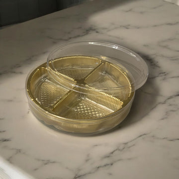 Transparent Round Super Crystal Box With Four Golden Sleeve Cavities: 1Nos