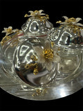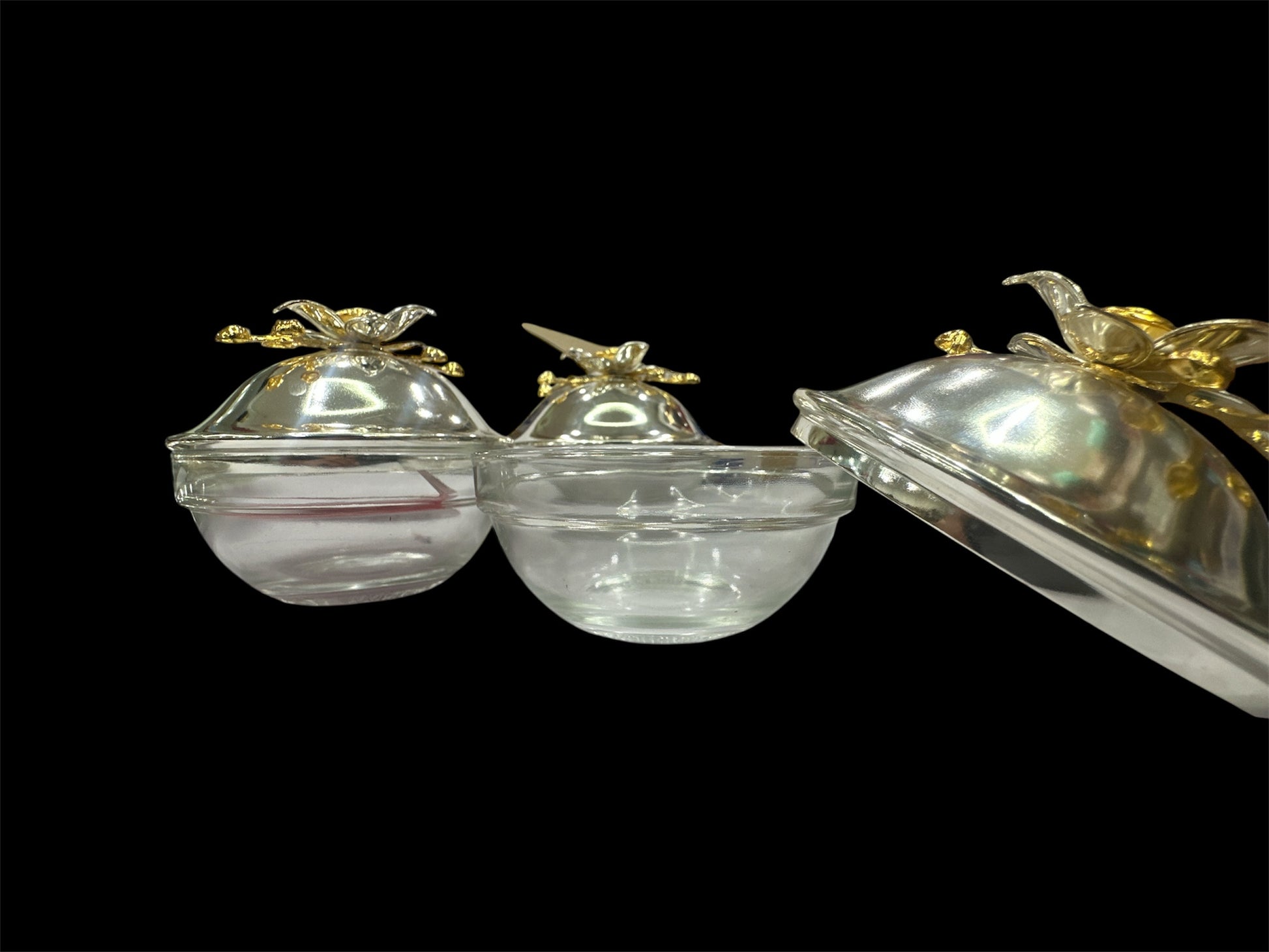 Opulent Flower Inspired Glass Bowl Set with Gold Lids