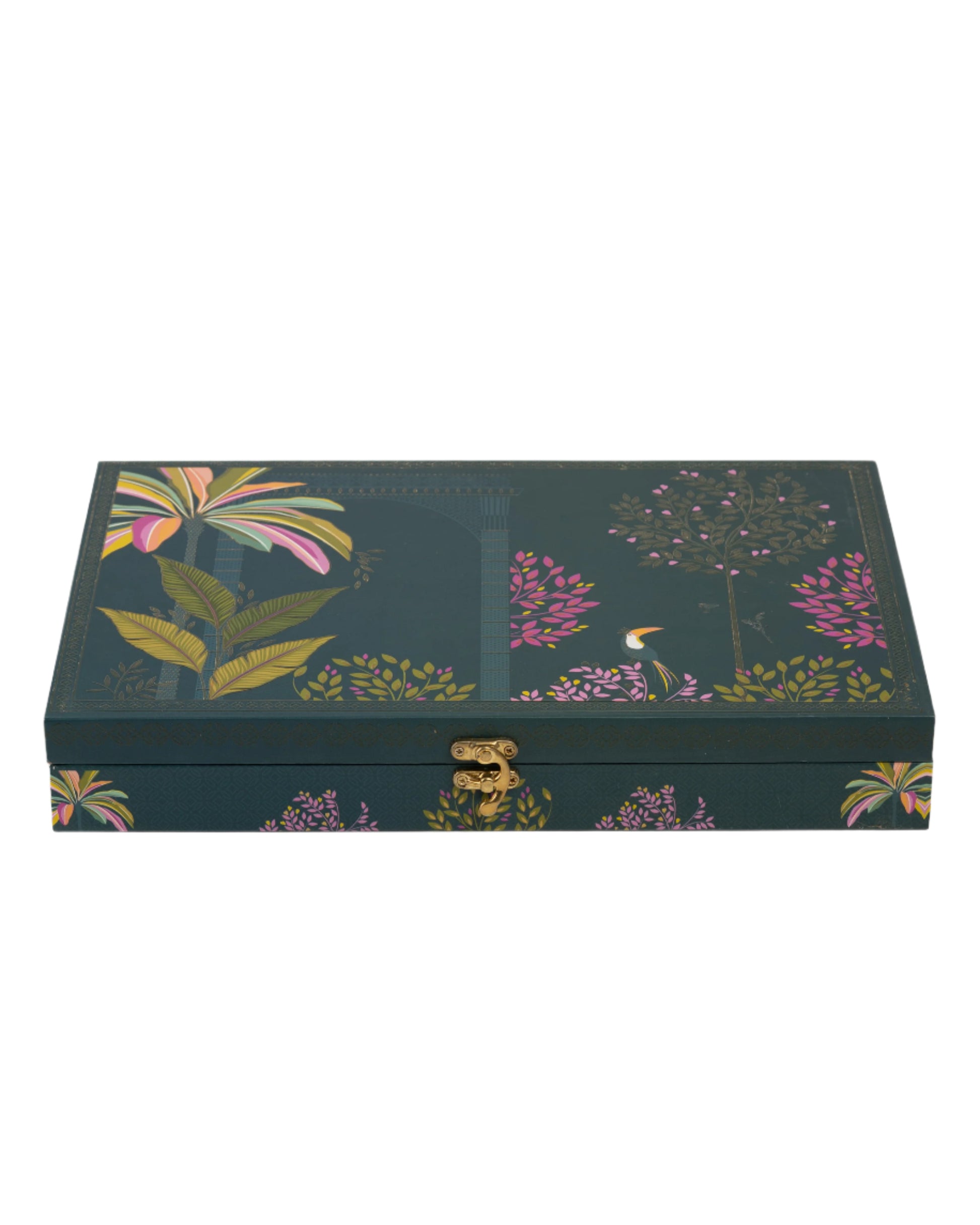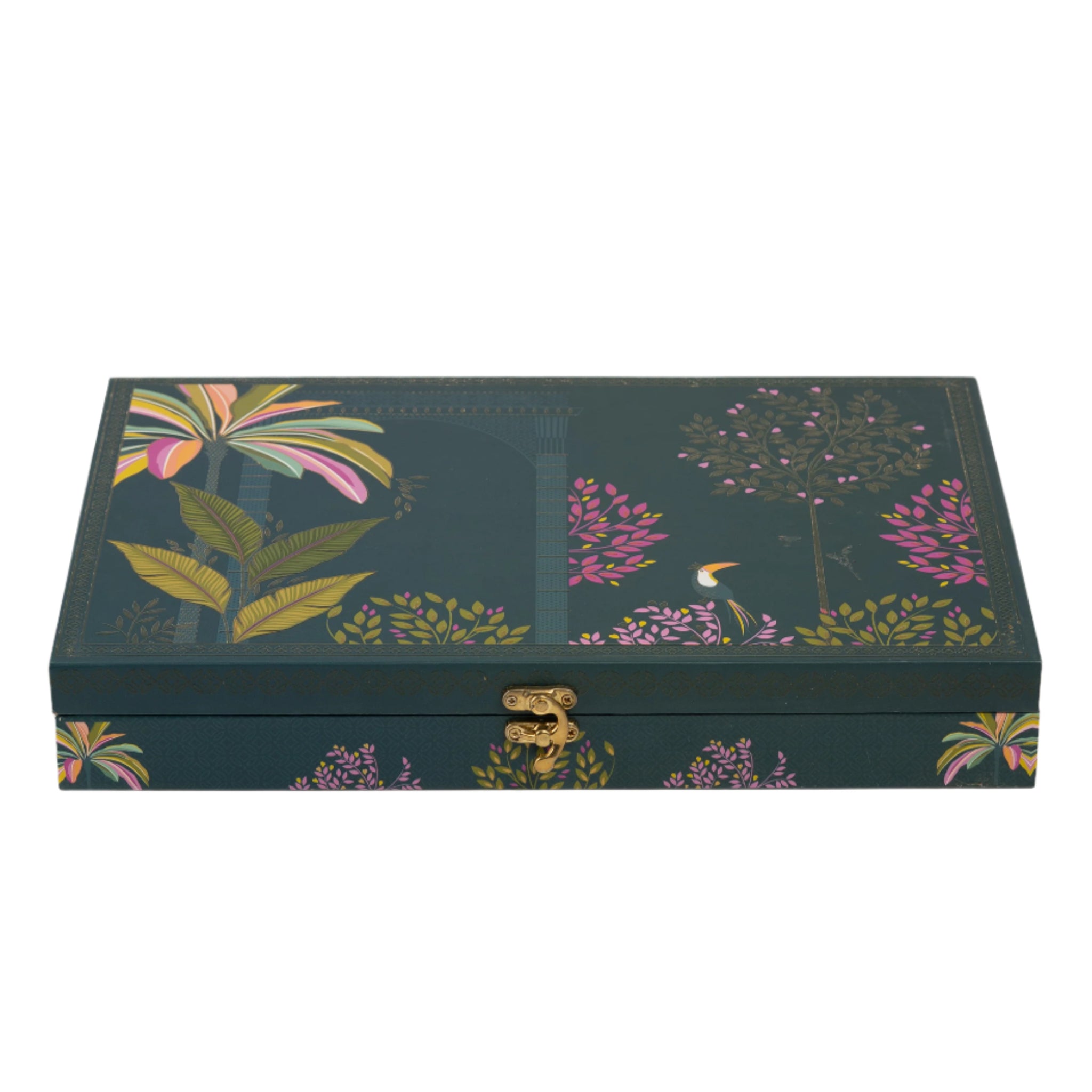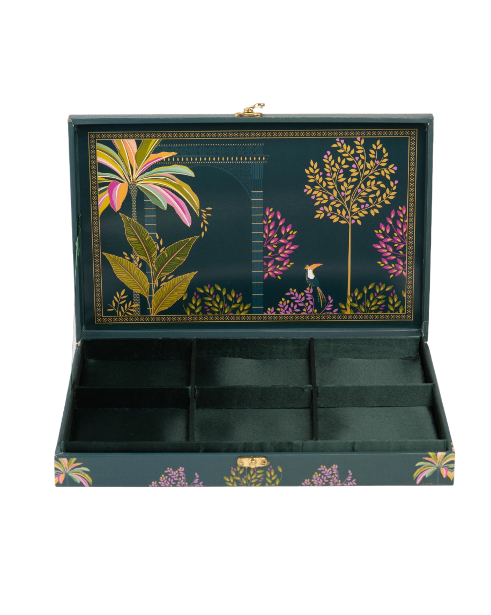 Immerse yourself in the beauty of nature with this Jungle Paradise Themed Multi Use Hamper Box, inspired by lush tropical gardens and exotic birds. Adorned with vibrant palm leaves, flowering trees, and a charming toucan illustration, this box brings a touch of the outdoors to your space.