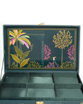 Crafted for both function and beauty, the box opens to reveal a velvet-lined interior with 9 individual compartments, perfect for organizing dry fruits, jewelry, accessories, stationery, or keepsakes. The secure gold-toned latch ensures your treasures stay safe while the structured design maintains durability.