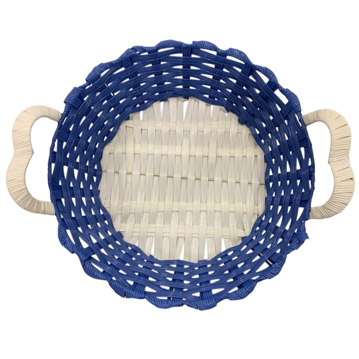 Bring elegance and functionality into your space with the Coastal Bliss Round Utility Basket. Handcrafted with care, this round basket combines vibrant blue and crisp white tones to offer a nautical aesthetic, perfect for any modern, rustic, or coastal-themed setting. Designed with charming heart-shaped handles for a touch of personality, it's as functional as it is decorative.