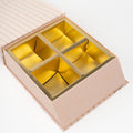 4 Golden Compartments: High-quality gold-laminated dividers that enhance presentation and prevent mixing of contents.