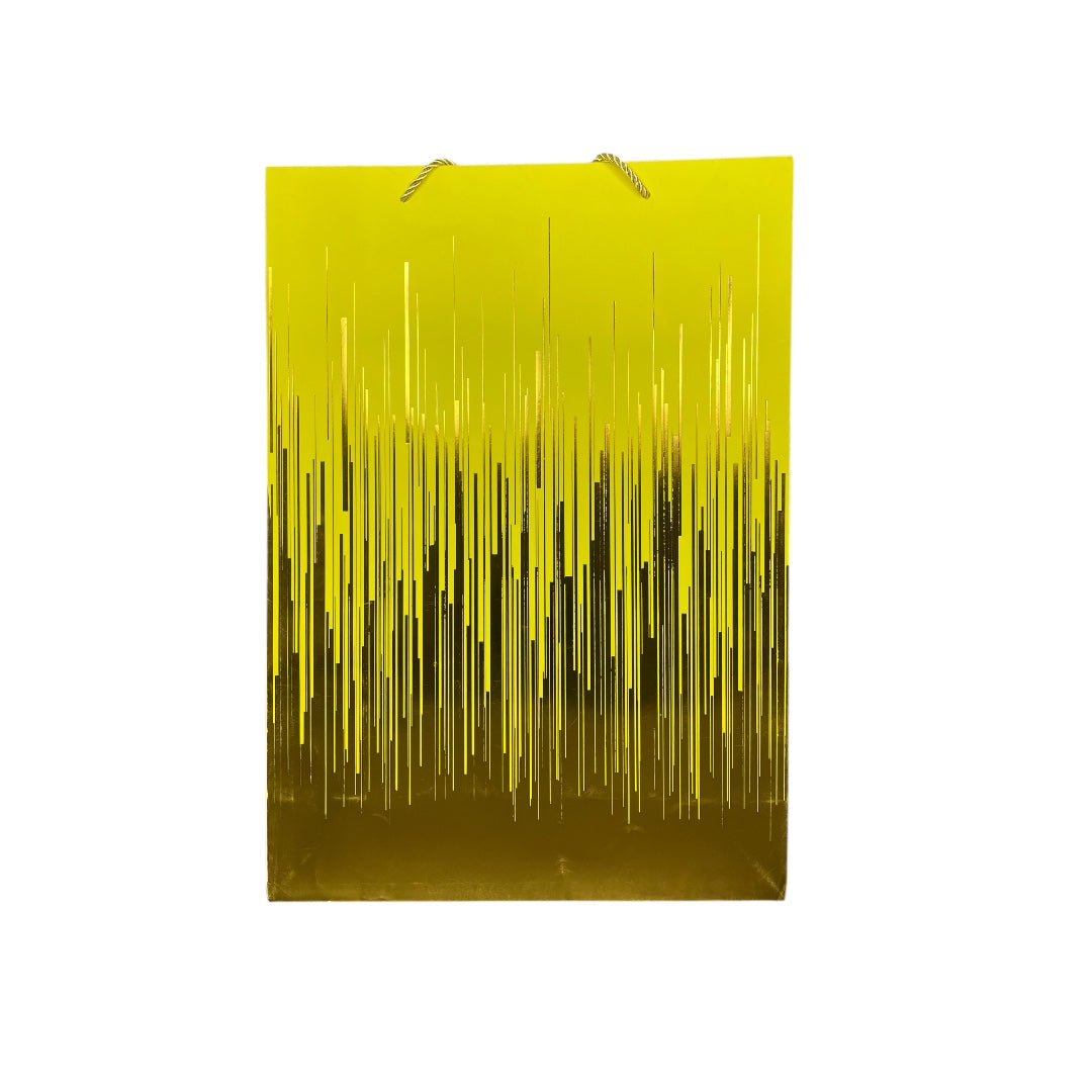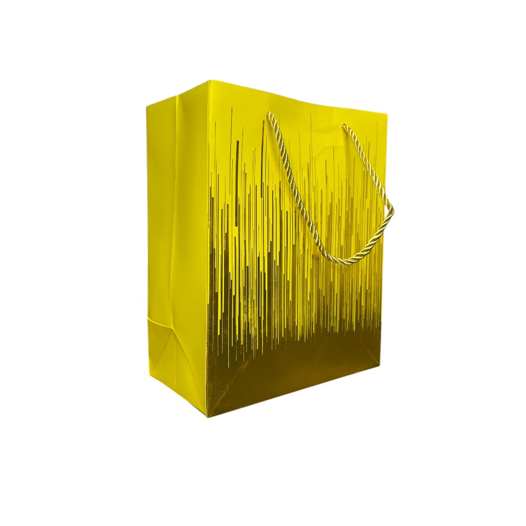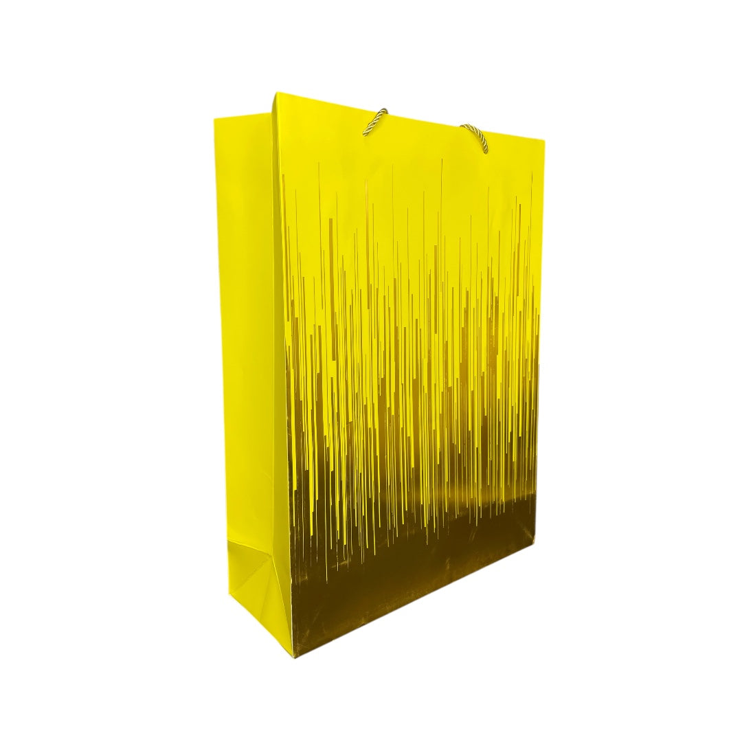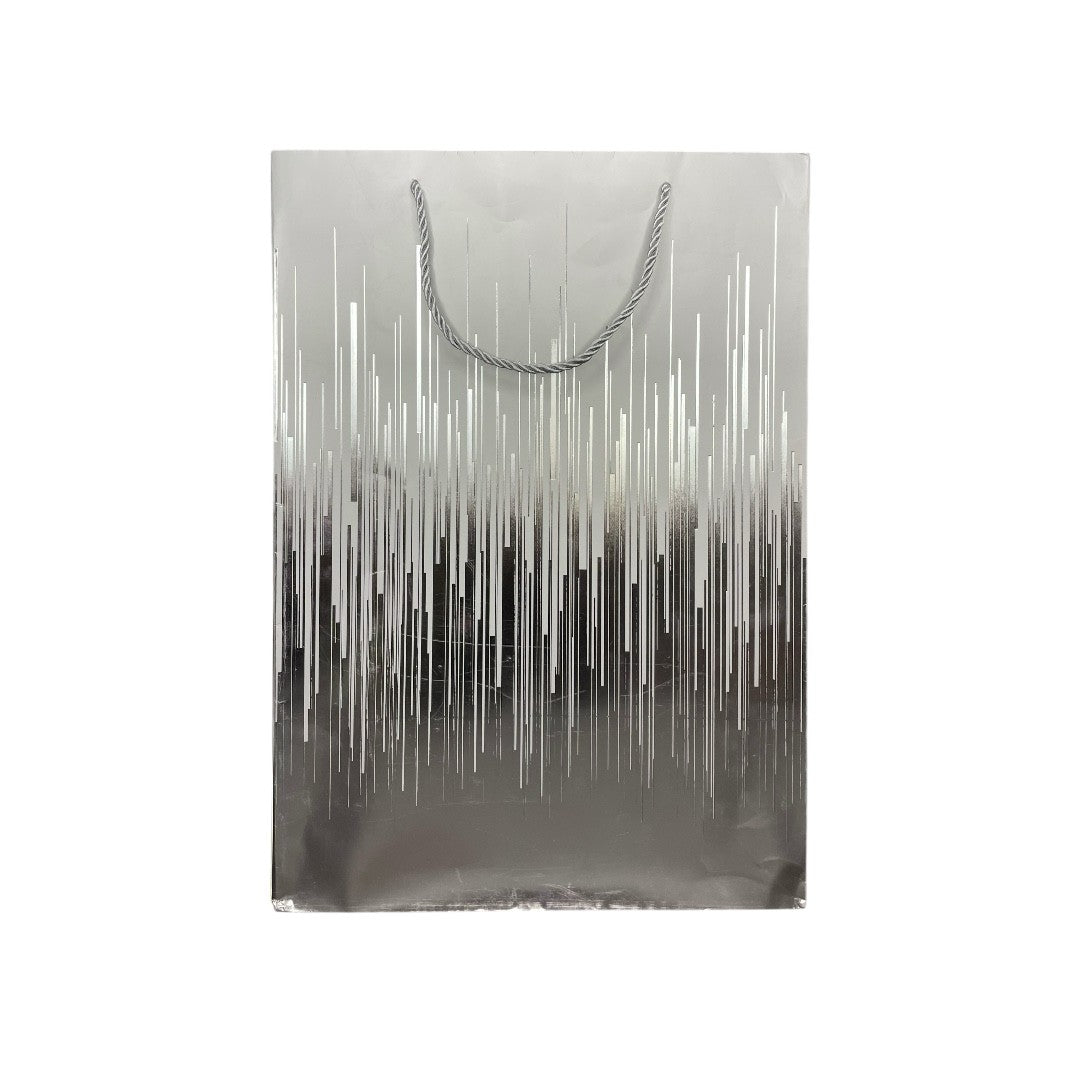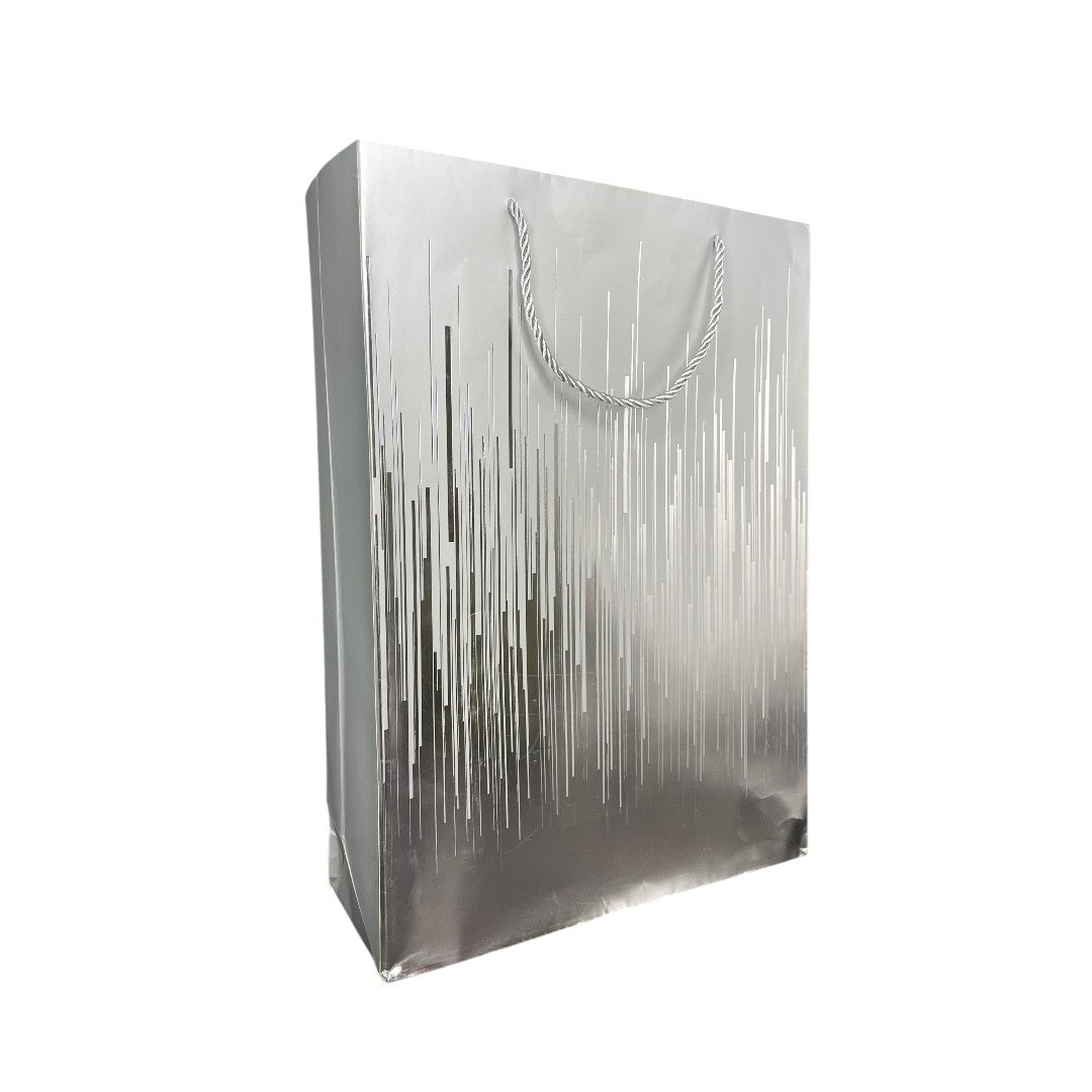 Add a bold touch of elegance to your gifts with this Stylish Metallic Paper Bag with Twisted Rope Handle, designed with a modern vertical line foil print for a sophisticated finish. The shiny red surface paired with a sturdy twisted rope handle makes this bag both fashionable and functional.