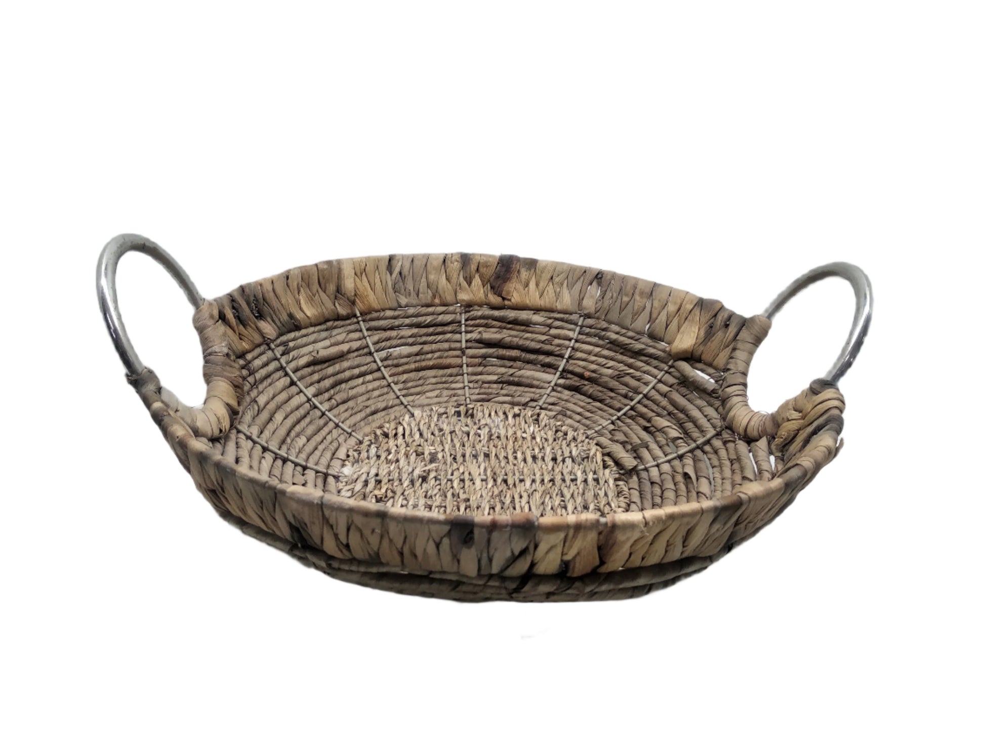 Elevate your home décor and organization with this beautifully handcrafted Oval Basket with Sturdy Steel Handles. Made from natural, eco-friendly materials, this woven basket combines rustic charm with modern utility. Featuring durable chrome-plated metal handles for a sleek touch, it’s perfect for serving bread, storing fruits, or organizing everyday items.