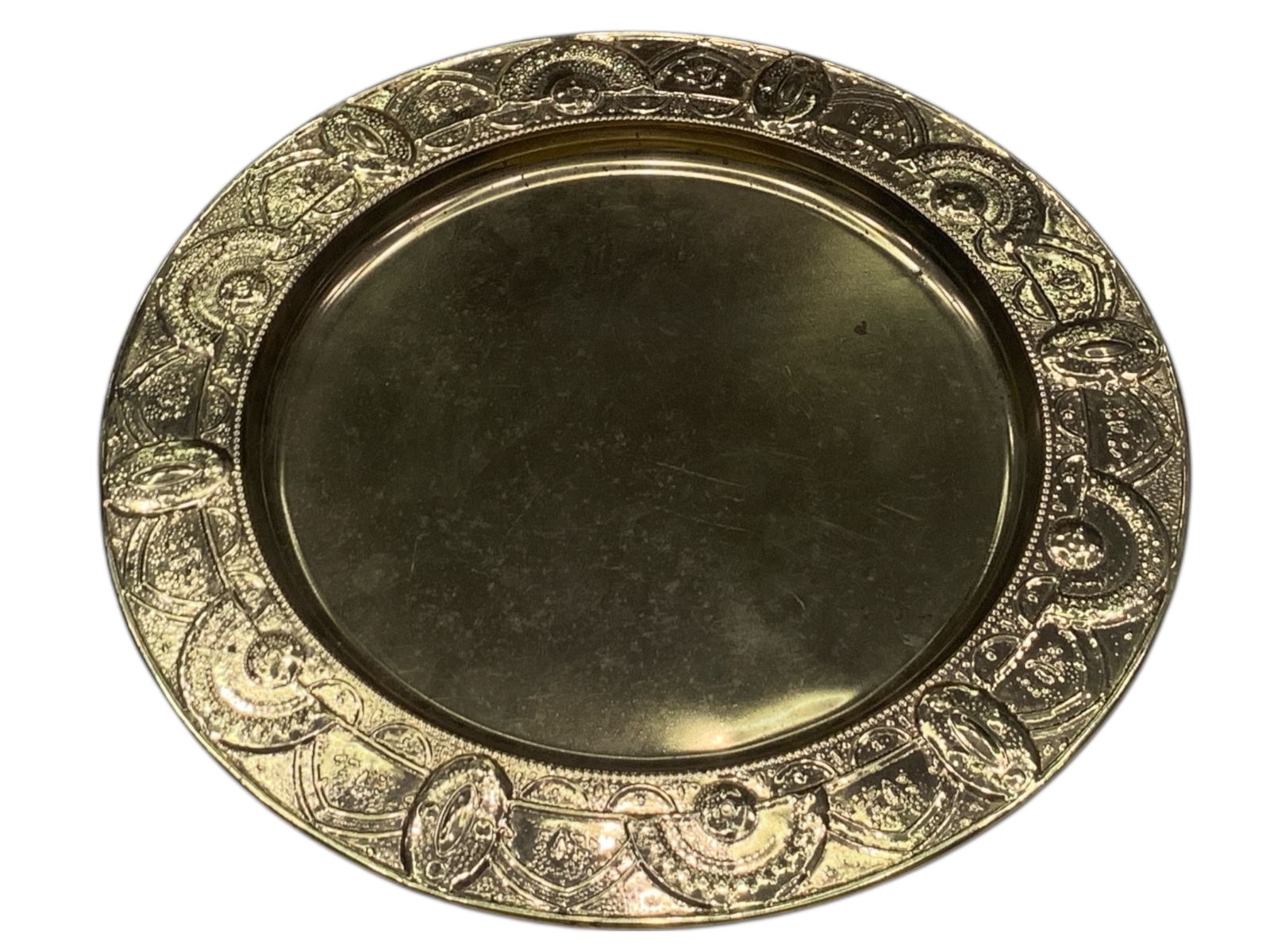 Whether used as a dining table accent, a wedding or event charger, or a collector’s display piece, this plate brings a touch of classic luxury to any setting. Its solid brass construction ensures durability and long-lasting shine, while the detailed border showcases expert craftsmanship.