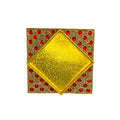 Crafted with care and precision, the golden surface is delicately embossed, adding a touch of texture and richness to its visual appeal. Whether for a wedding, festival, or as a thoughtful gift, this tray adds elegance and sophistication to any occasion.