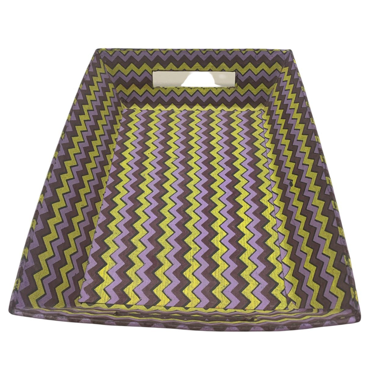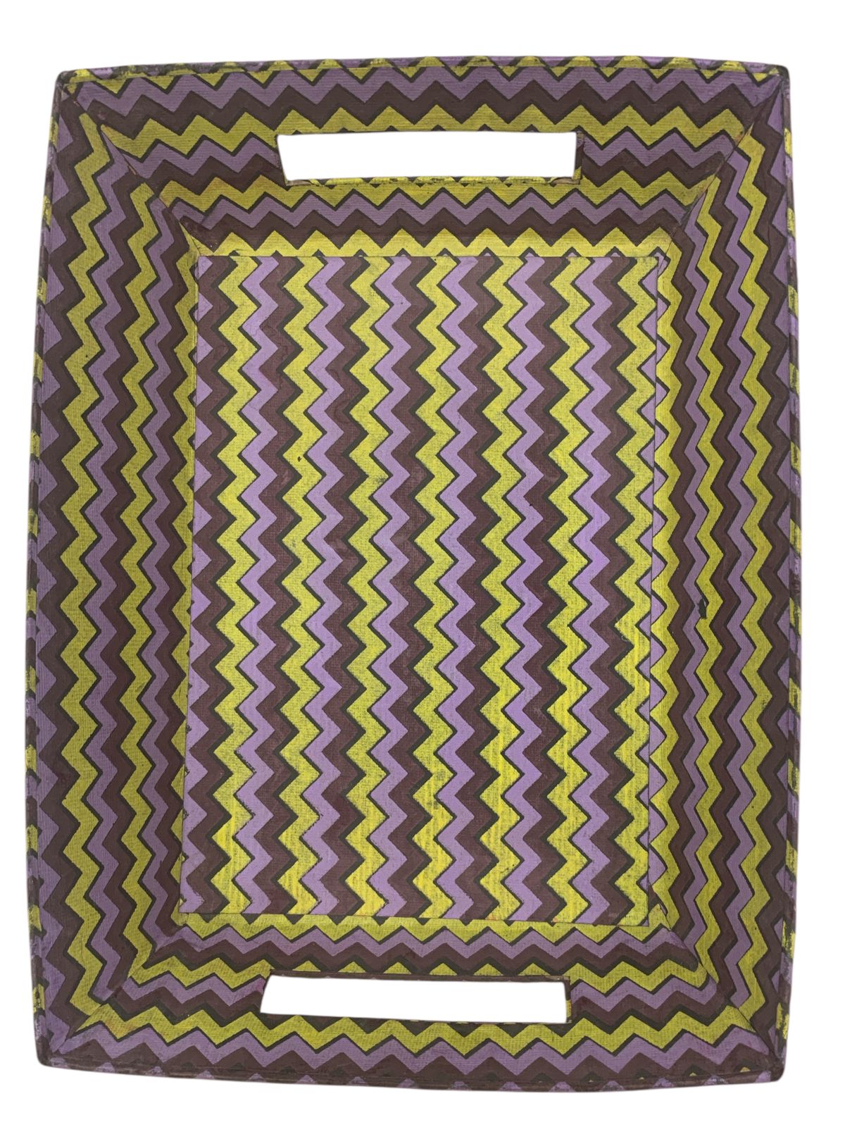 Bring a pop of color and style to your home with the Zigzag Delight Serving Tray. Featuring a bold zigzag pattern in vibrant shades, this tray is perfect for serving drinks, snacks, or breakfast in bed. The sturdy construction ensures durability, while the side handles make it easy to carry from room to room.