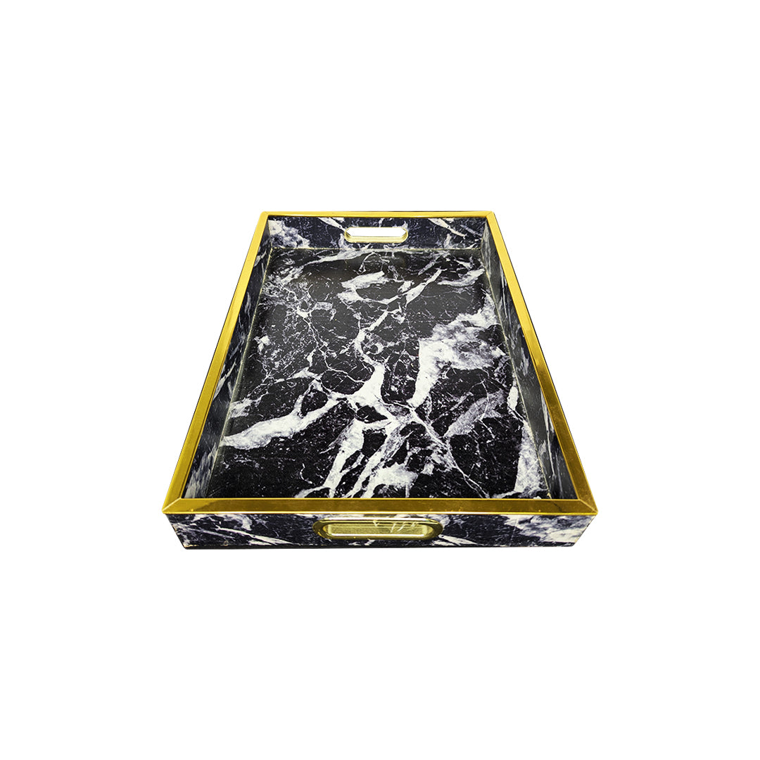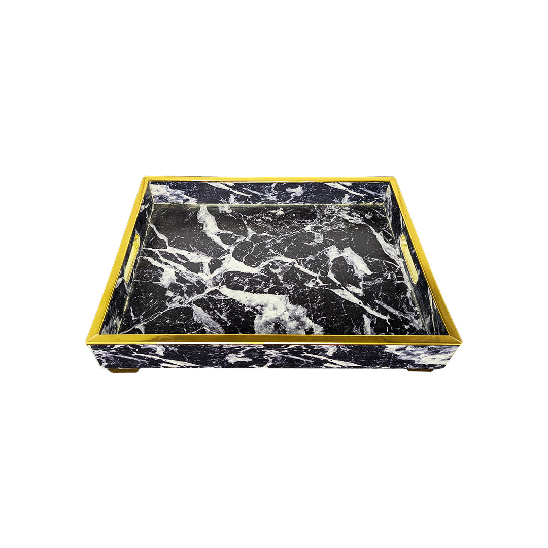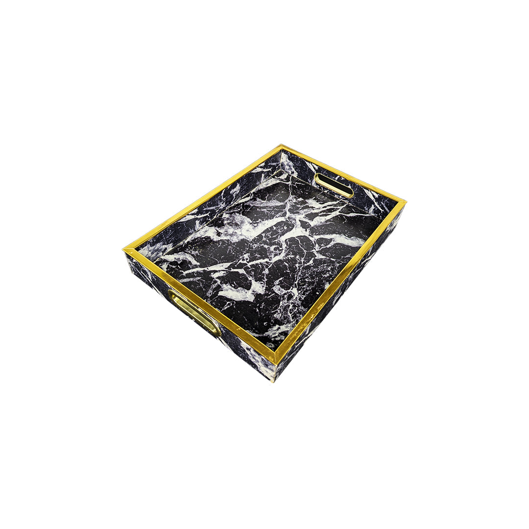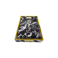 ⚫ Thundering Black Marble Serving Tray with Golden Brass Frame