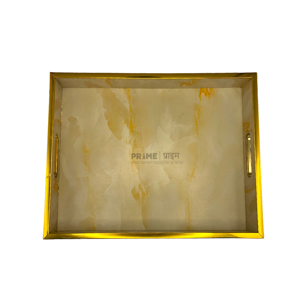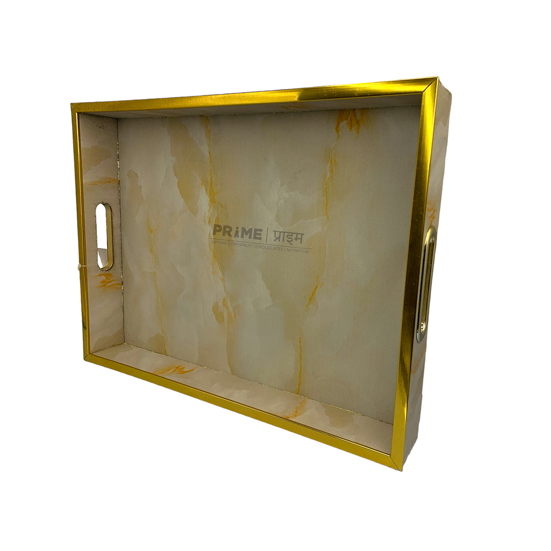Luxury Wooden Tray with Golden Trim & Stone Finish