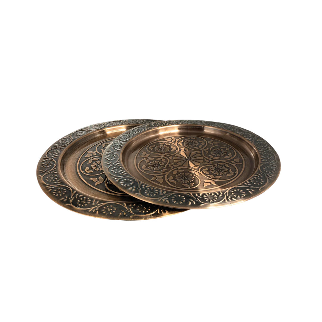 Whether you're hosting a special gathering or looking to enhance your home decor, these versatile trays are ideal for both functional use and as a beautiful centerpiece. With their refined copper-plated finish and delicate patterns, these trays make a statement in any room.